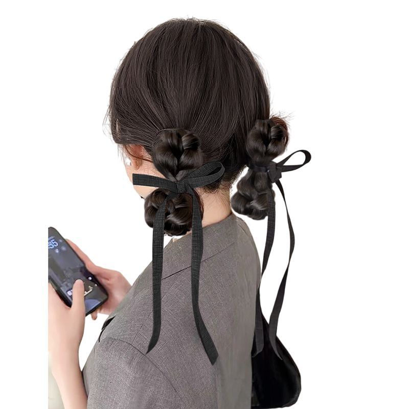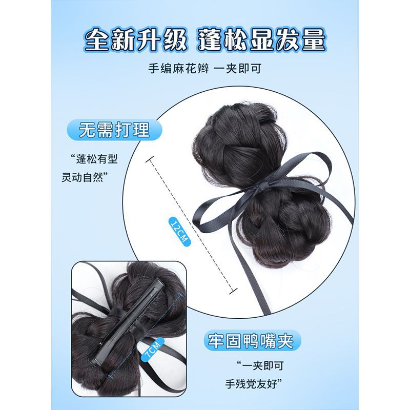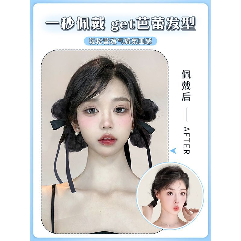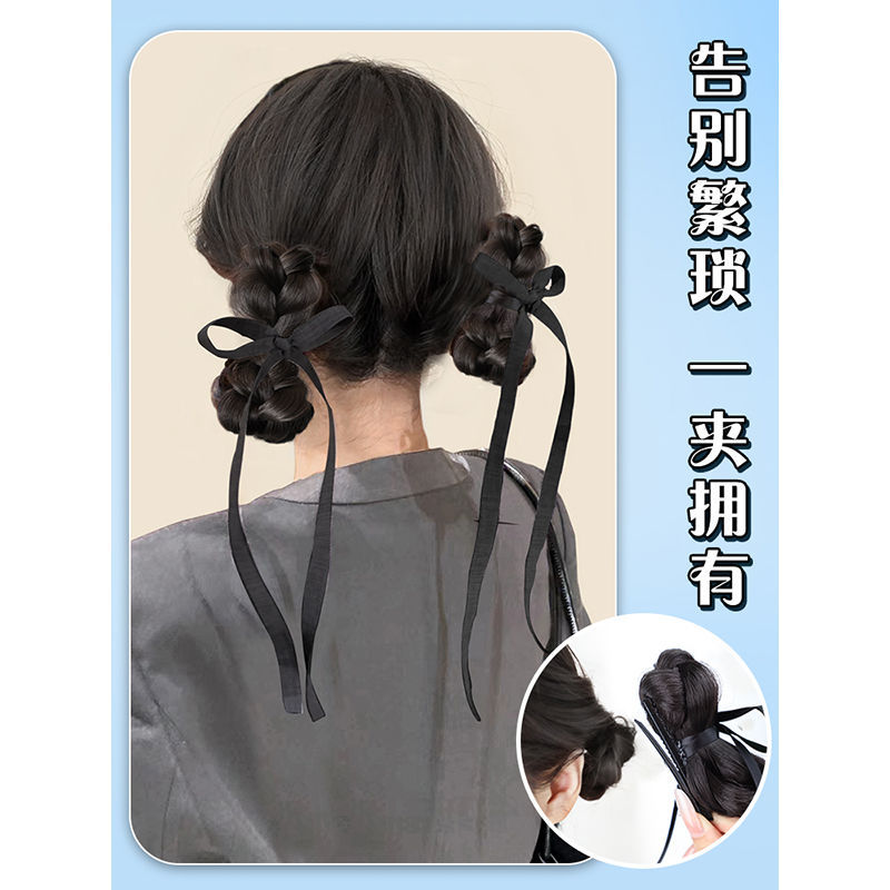 丸子头假发仿真发元气少女风假发发圈蝴蝶结花苞双丸子头盘发神器