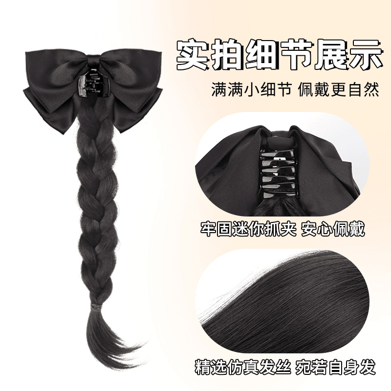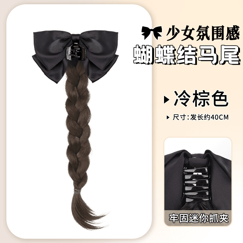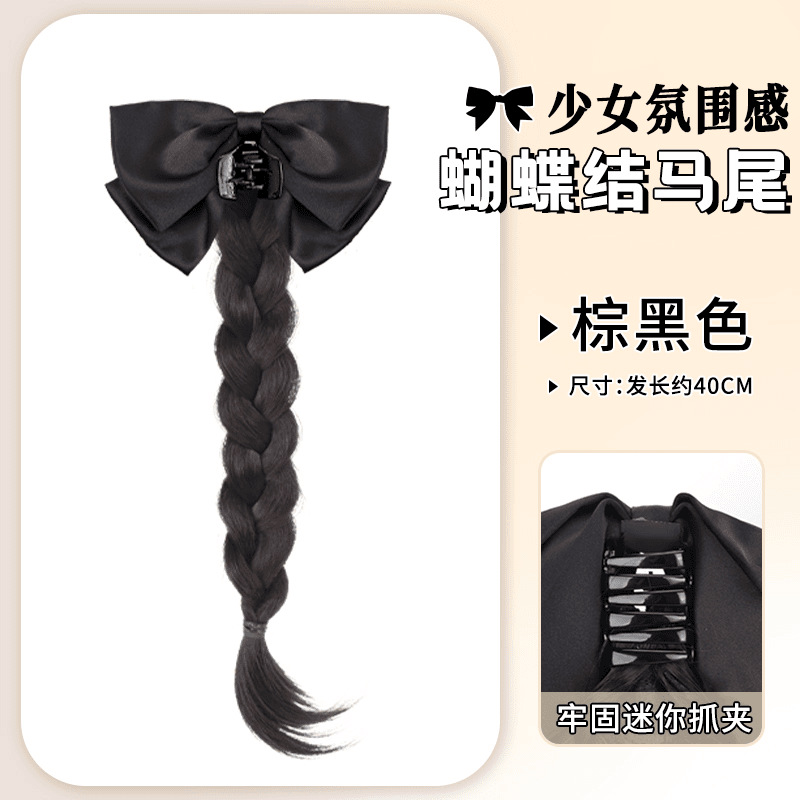 【冷棕色】黑色蝴蝶结抓夹马尾辫