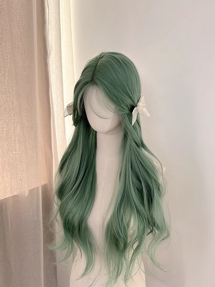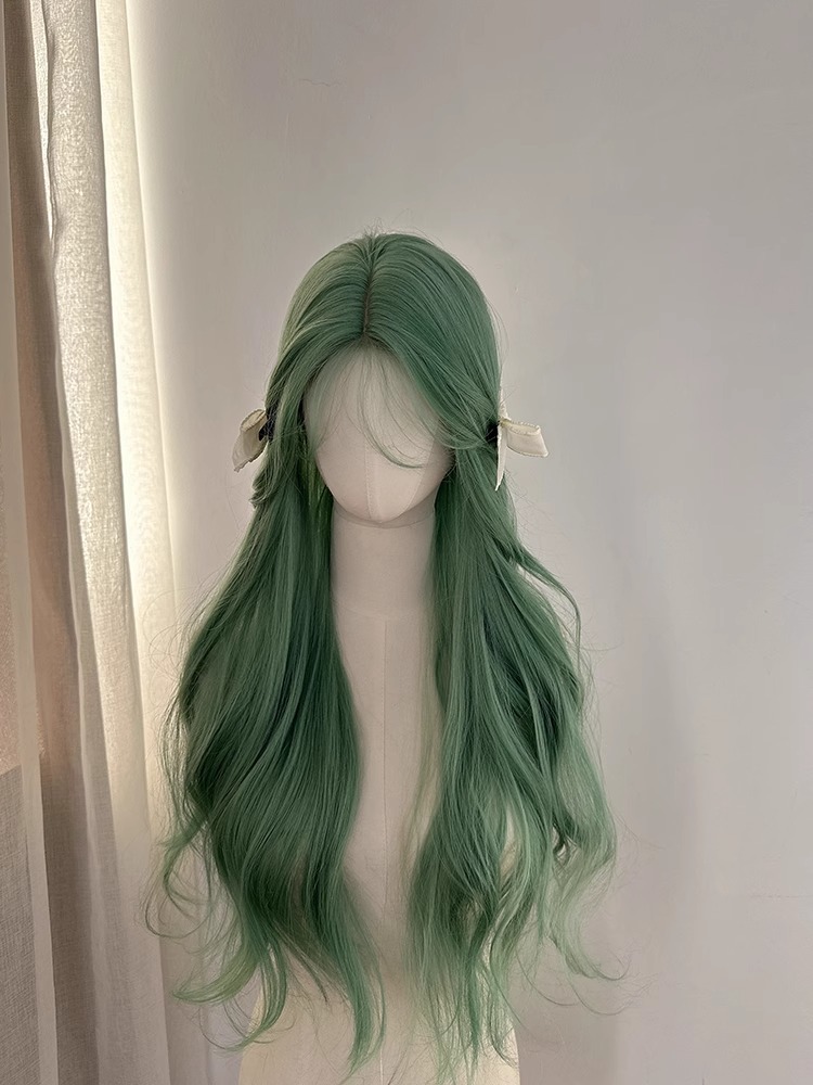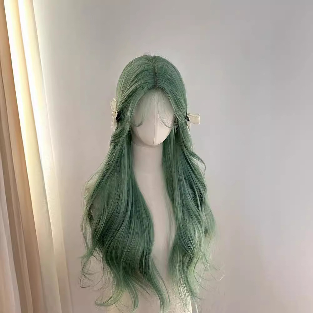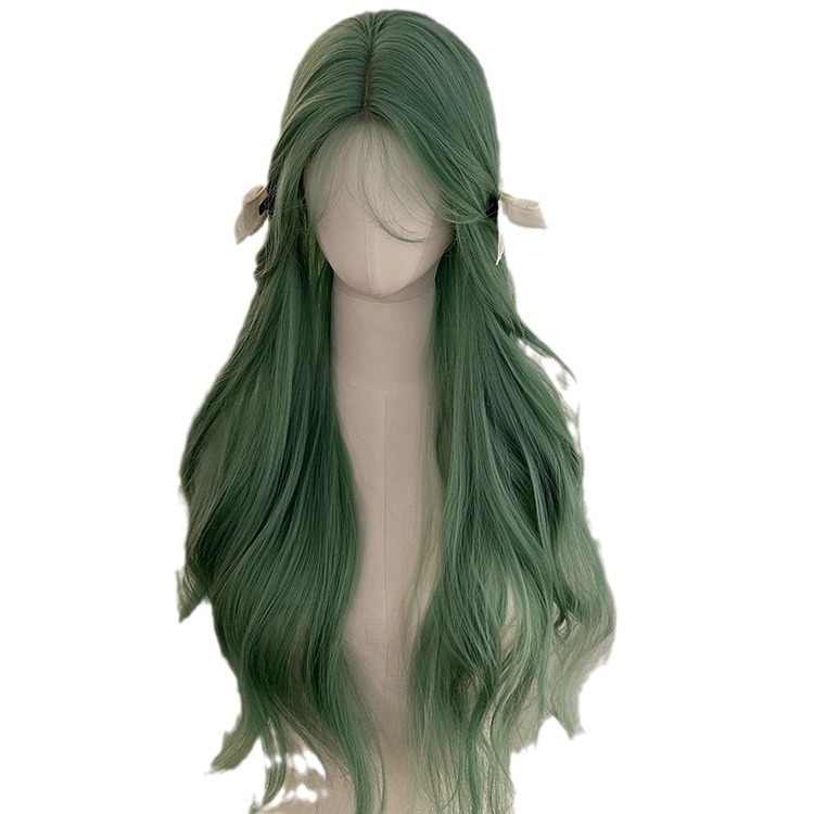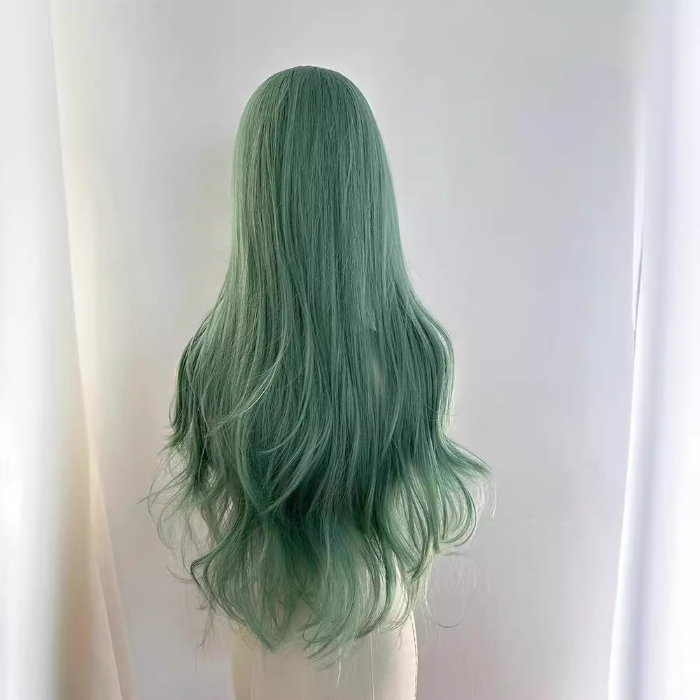 绿色日常假发女全头套八字刘海大波浪卷发长发万用cos