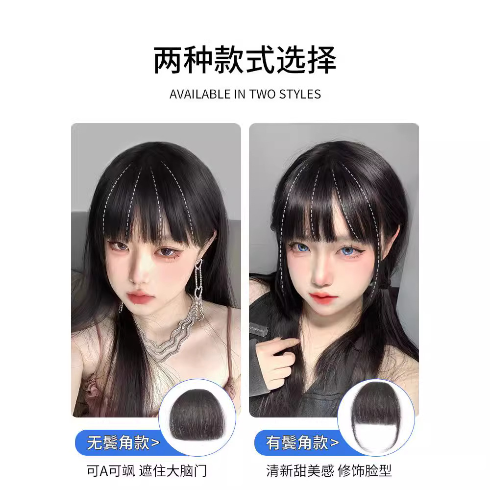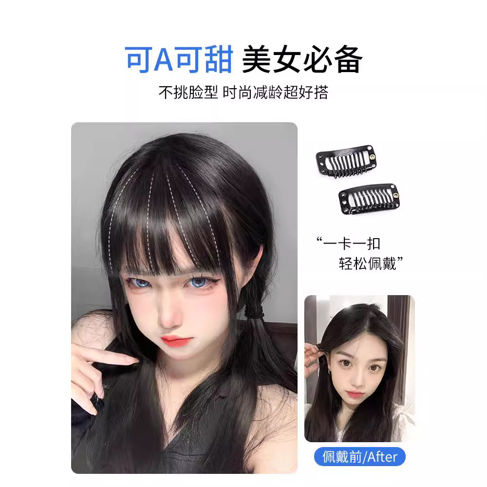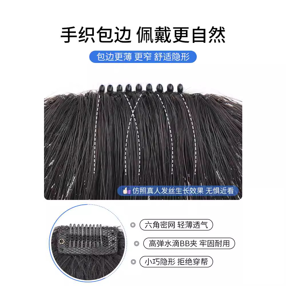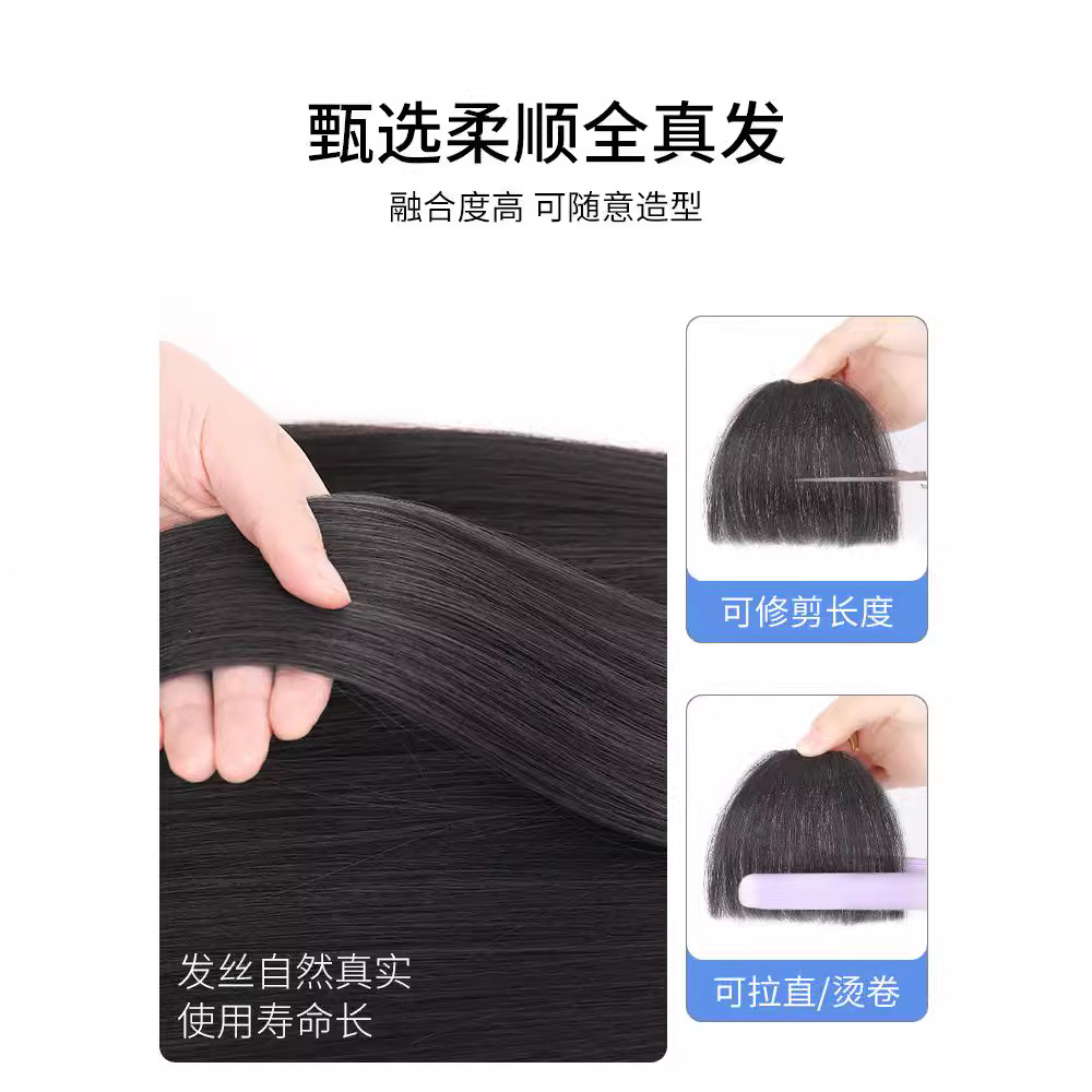 漫画刘海假发女头顶真发全真人发空气假刘海自然前额齐刘海假发片