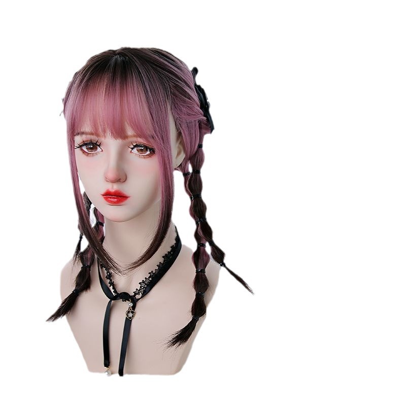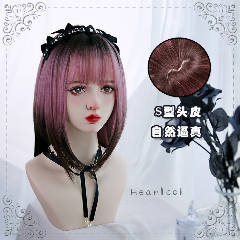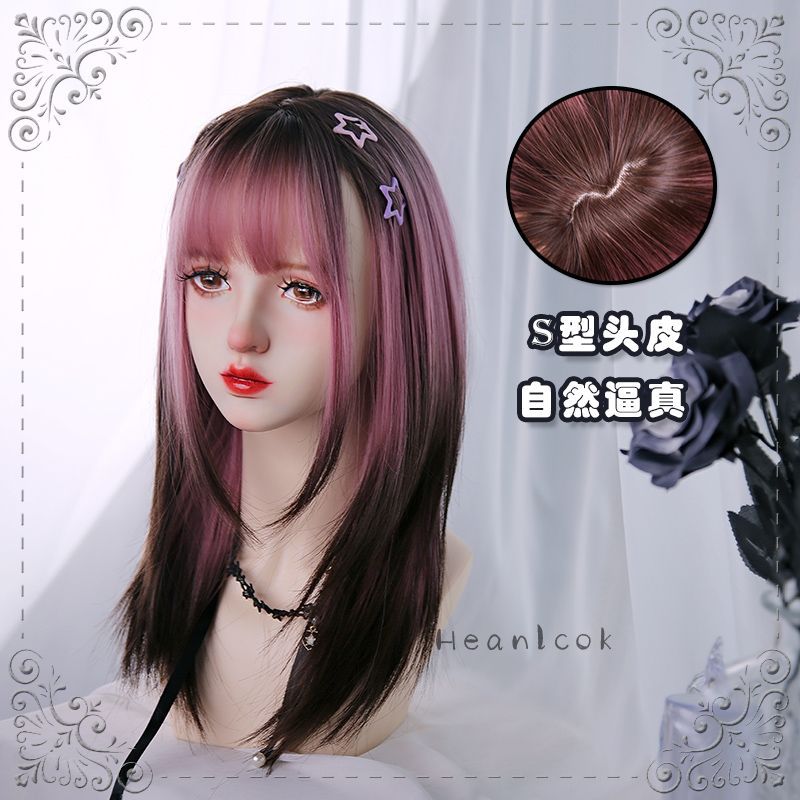 原宿软妹Lolita树莓粉渐变日常S头皮可爱女长直假发