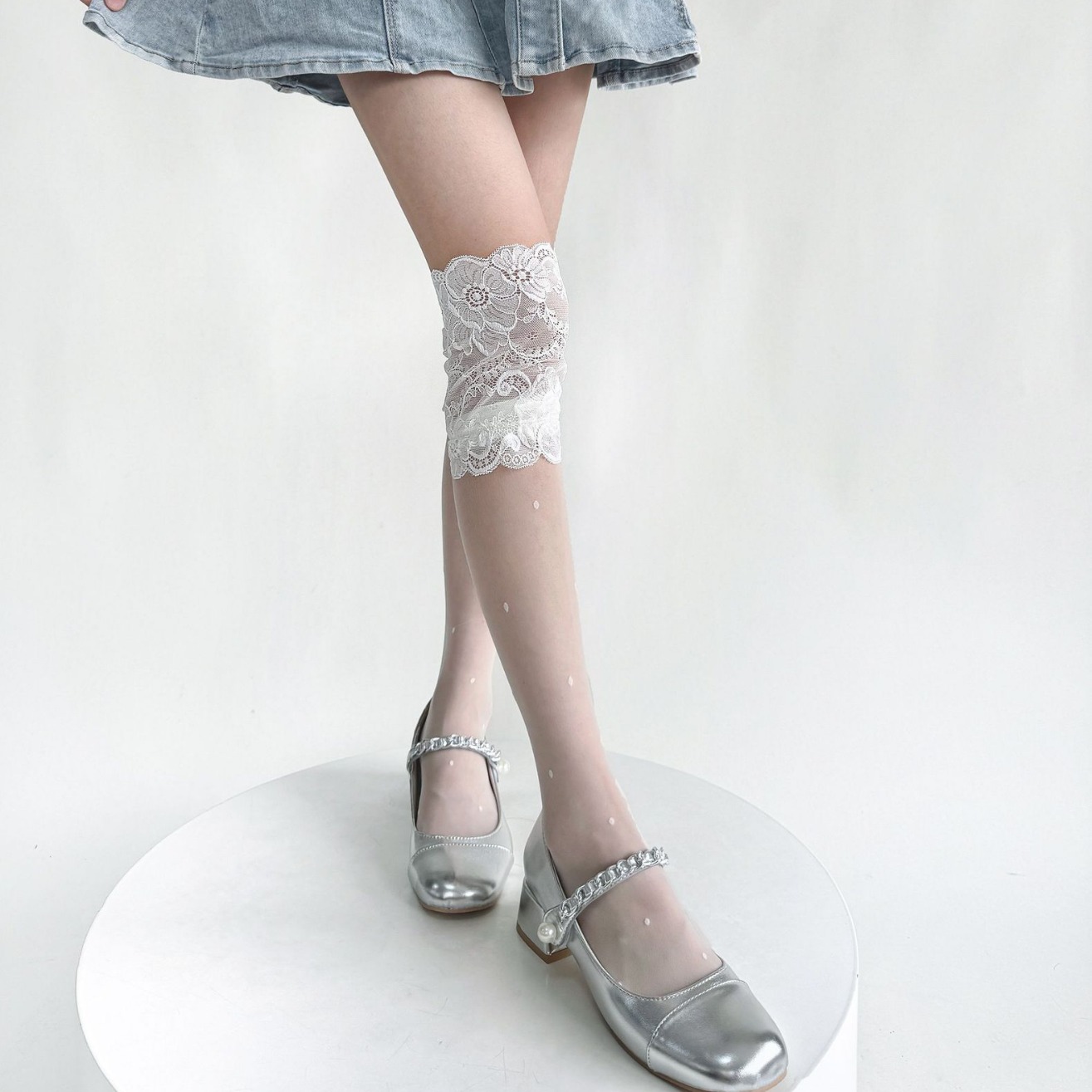 夏季超薄透肉任意剪奶白圆点爱心大花边堆堆小腿袜花卉提花高筒袜