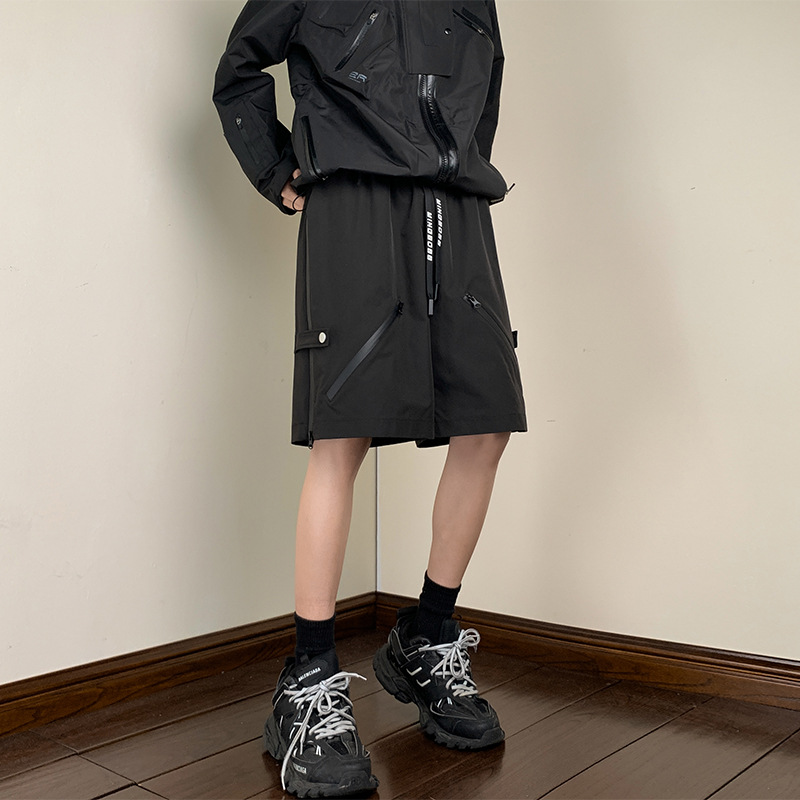 美式机能短裤男夏季宽松大码设计感小众拉链裤子休闲运动五分中裤