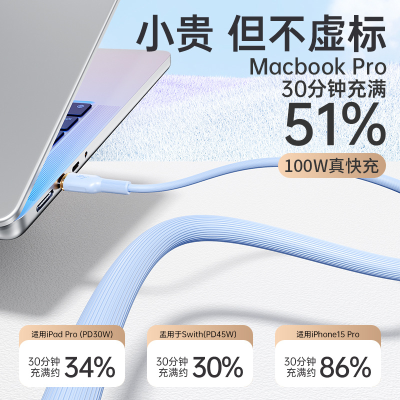 双Type-C数据线PD快充车载适用苹果15华为小米ipadpro平板笔记本