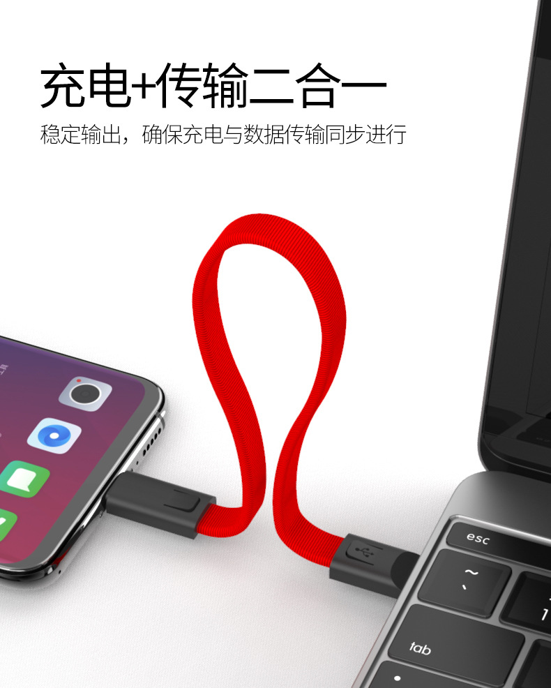充电宝短款数据线22cm快充便携式钥匙扣挂绳礼品安卓type-c充电线