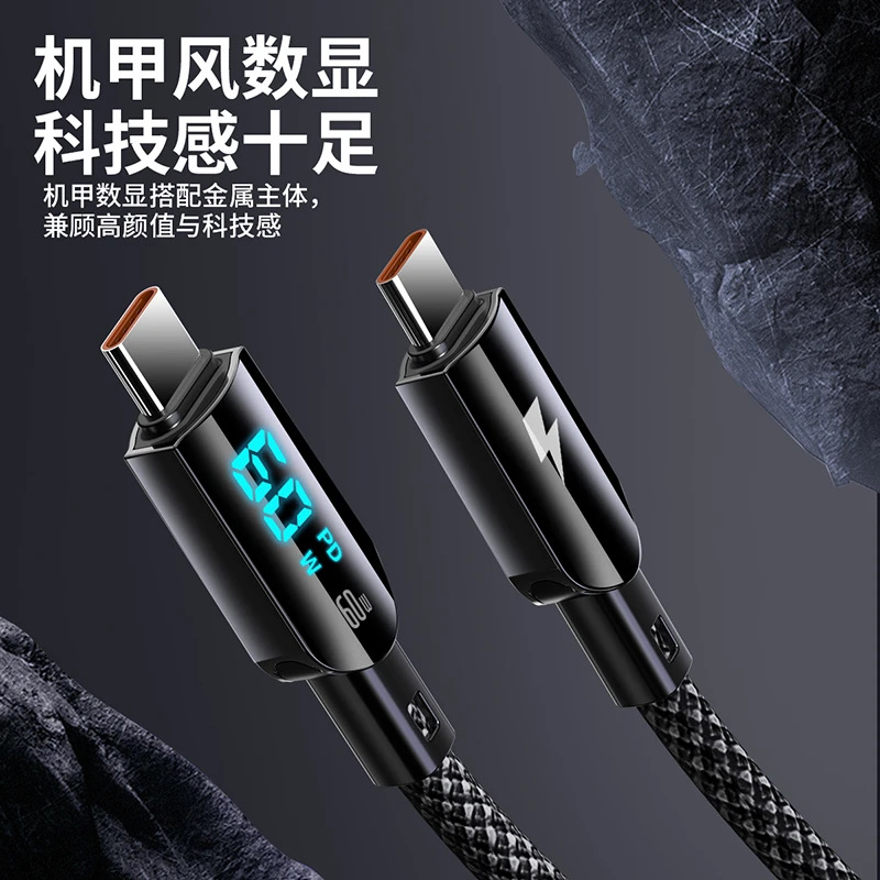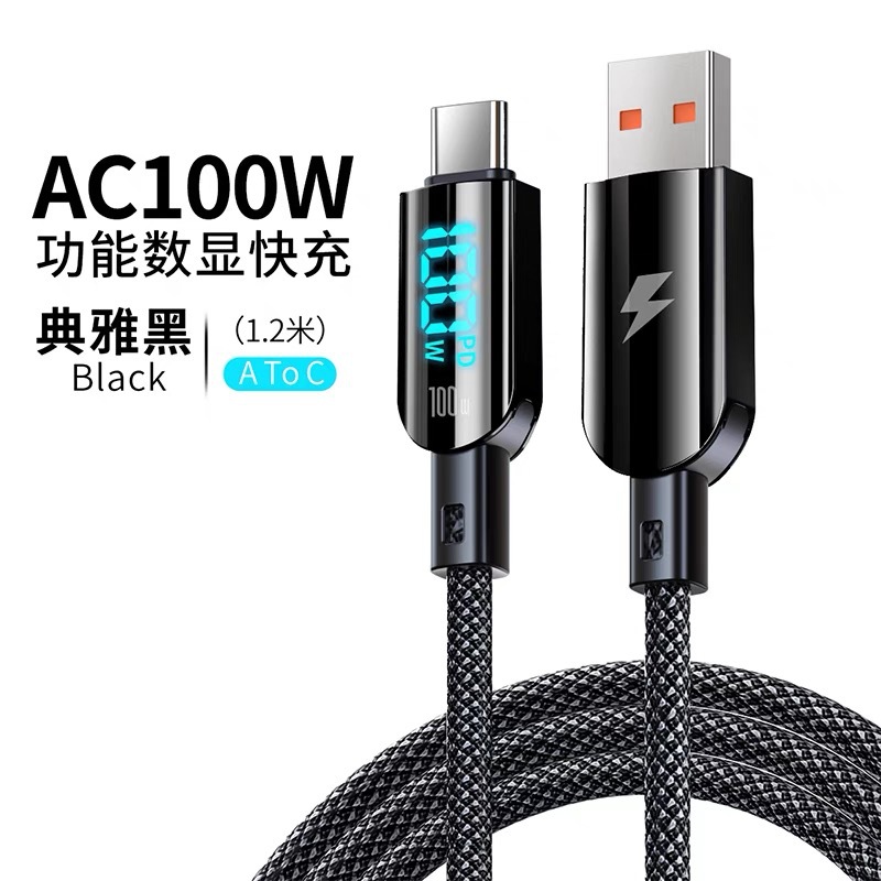 智能数显100W快充数据线typec适用苹果华为安卓荣耀充电器线PD30W