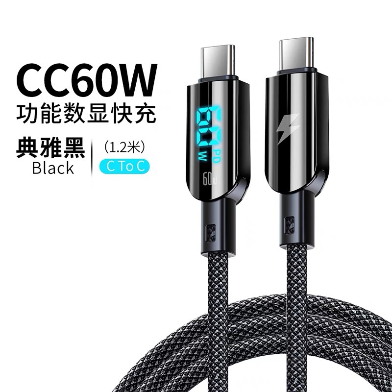 典雅黑【双头Type-C】智能数显★60W快充