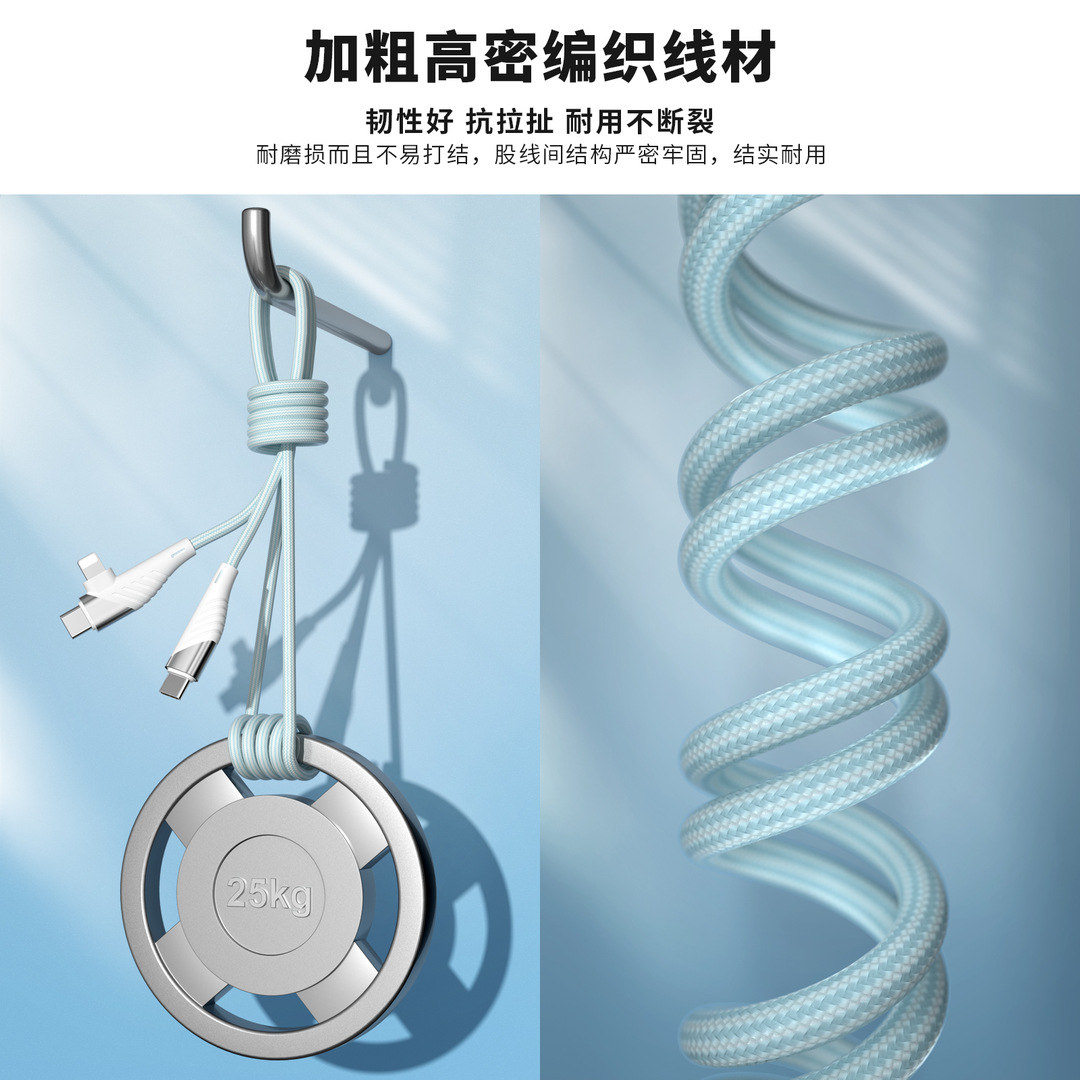 双Type-C一拖二快充数据线PD65W二合一适用苹果15充电线华为车载
