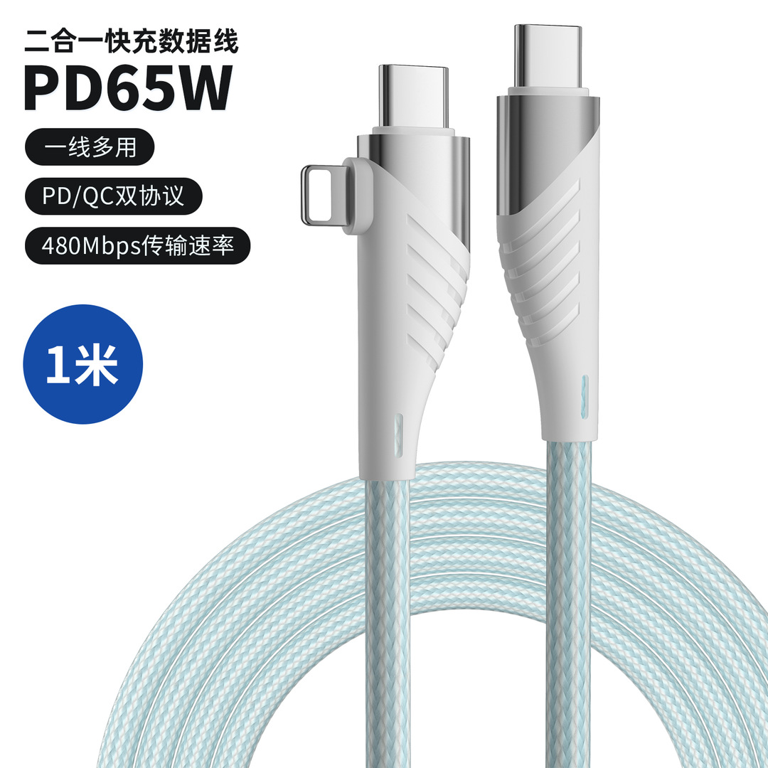 1米-蓝白色【Type-C转苹果+Type-C】二合一