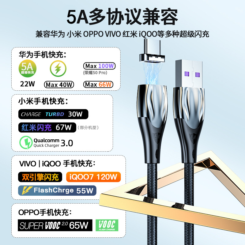 66W快充磁吸数据线强磁适用荣耀华为苹果充电线vivo手机超级闪充