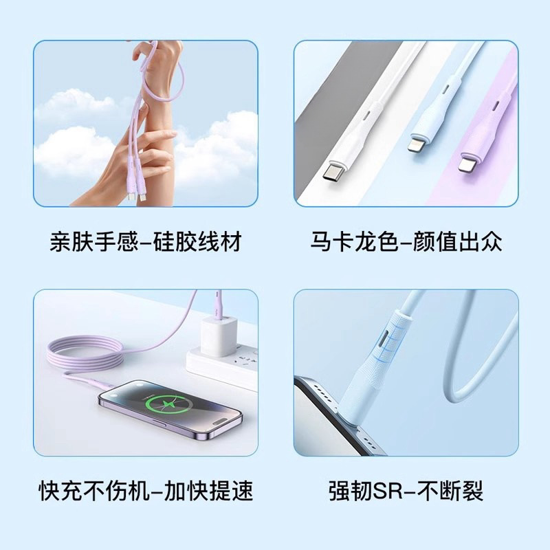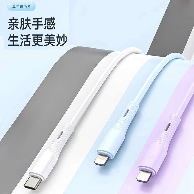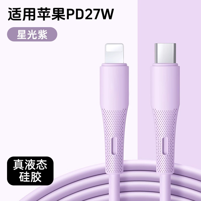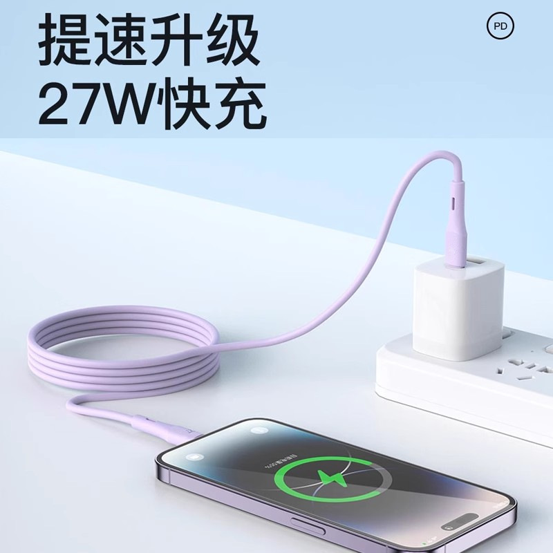 适用苹果快充数据线PD27W快充线真液态硅胶iphone14 13 12充电线x