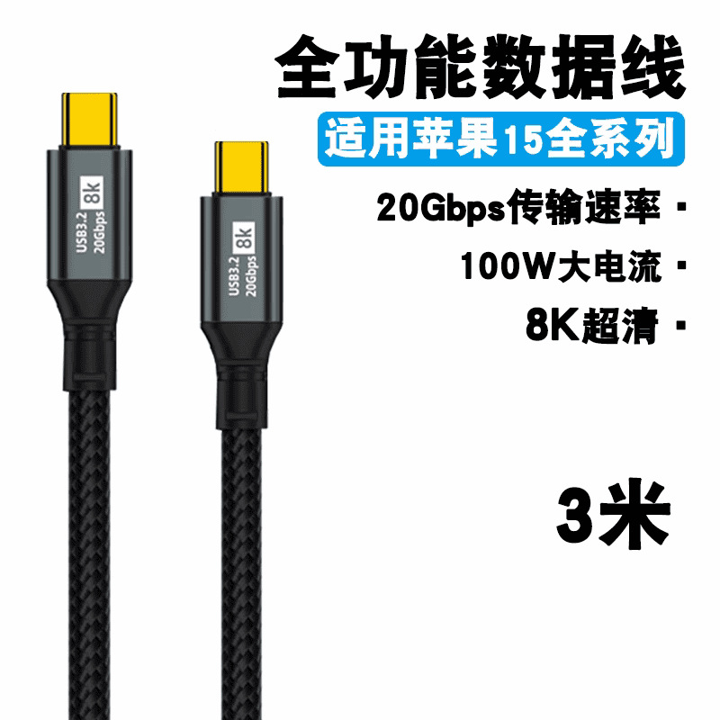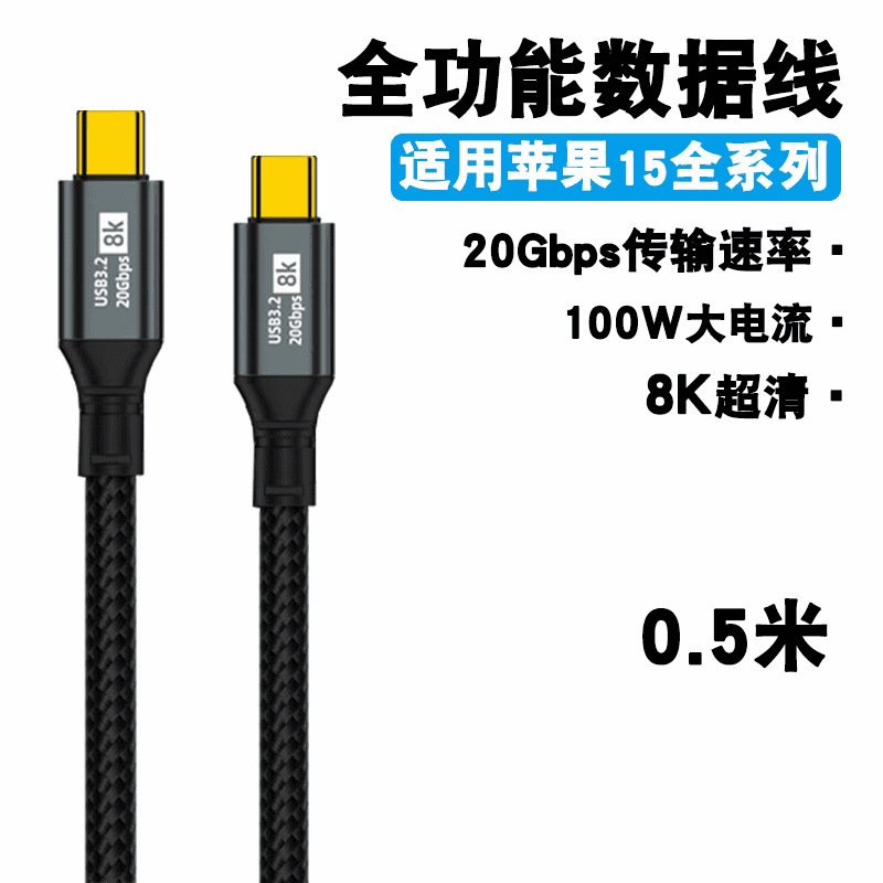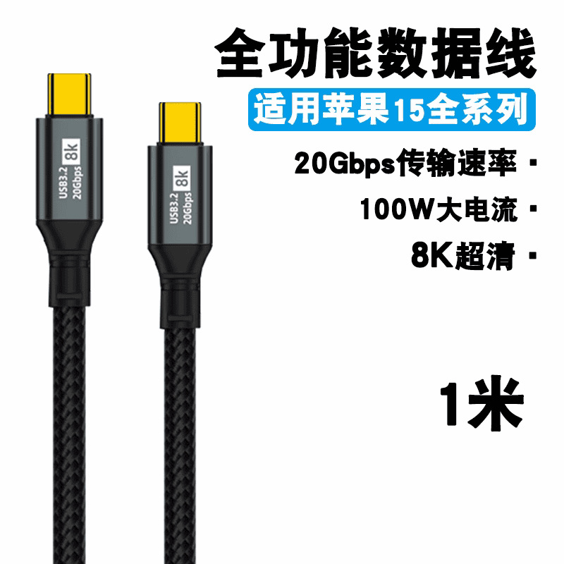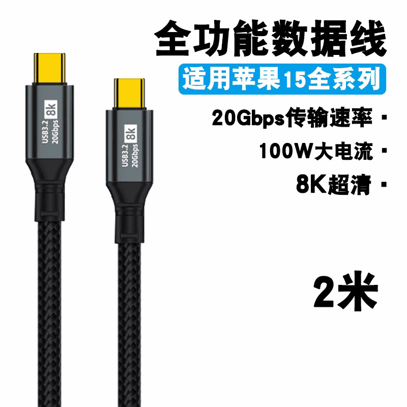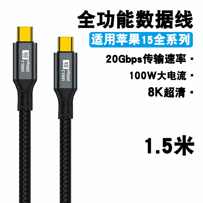 双Type-C数据线100W快充8K高清投屏手机平板充电高速传输全功能