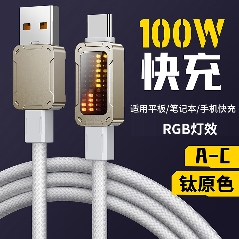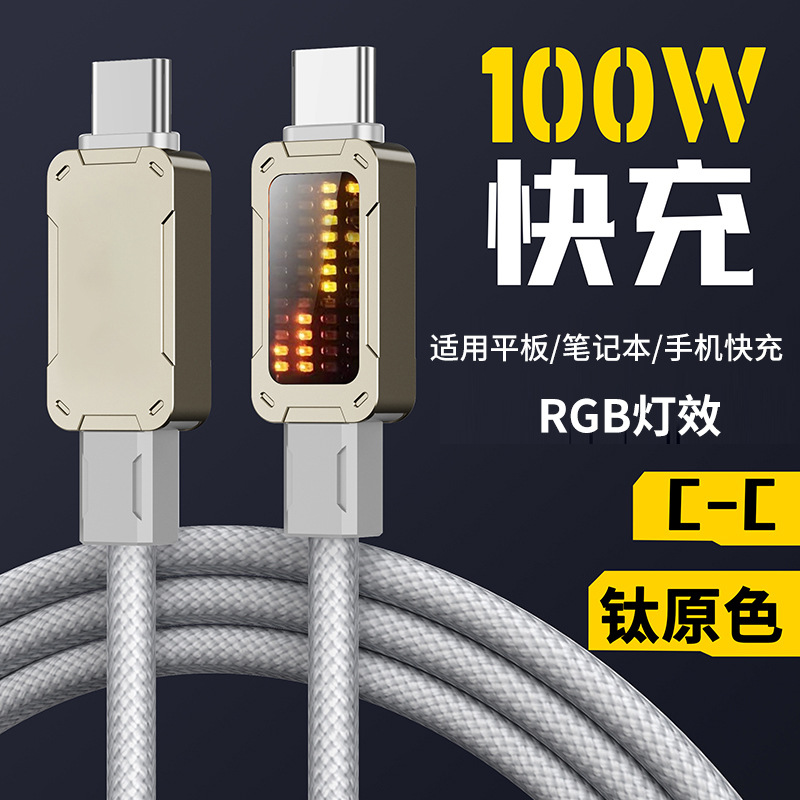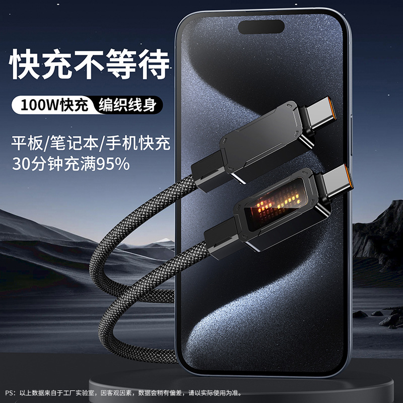 灯显100W超级快充双typec手机数据线PD30W快充适用华为苹果16/15
