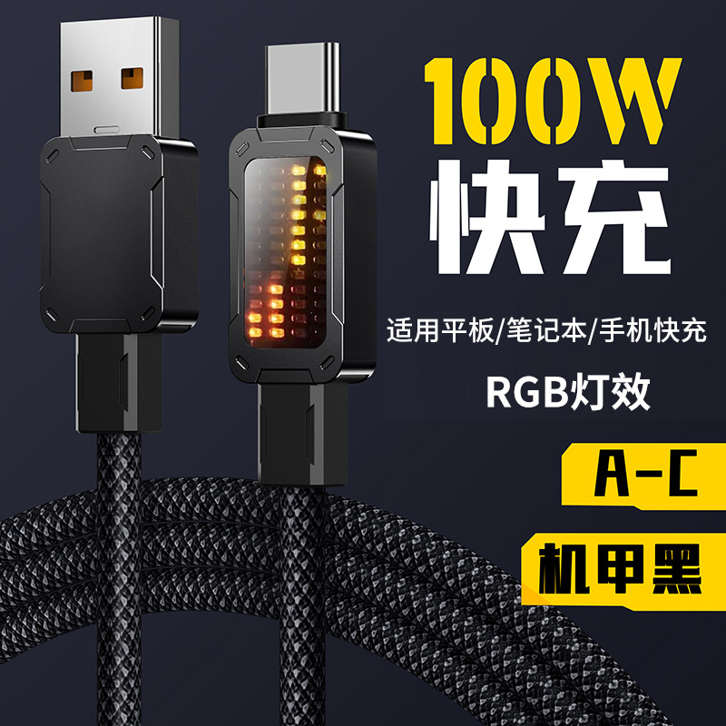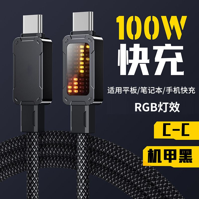 机甲黑【双头Type-C】100W快充★RGB灯效