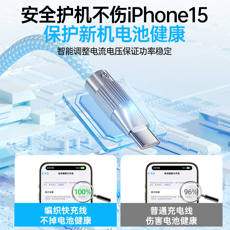 适用苹果15快充数据线iPhone15充电线双type-c快充c to c车载iPad