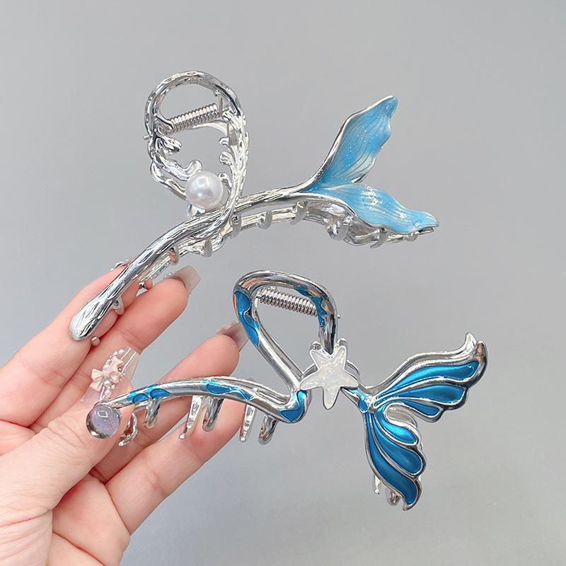 超仙网红蓝色鱼尾简约大号抓夹优雅气质后脑勺盘头发饰精致发夹