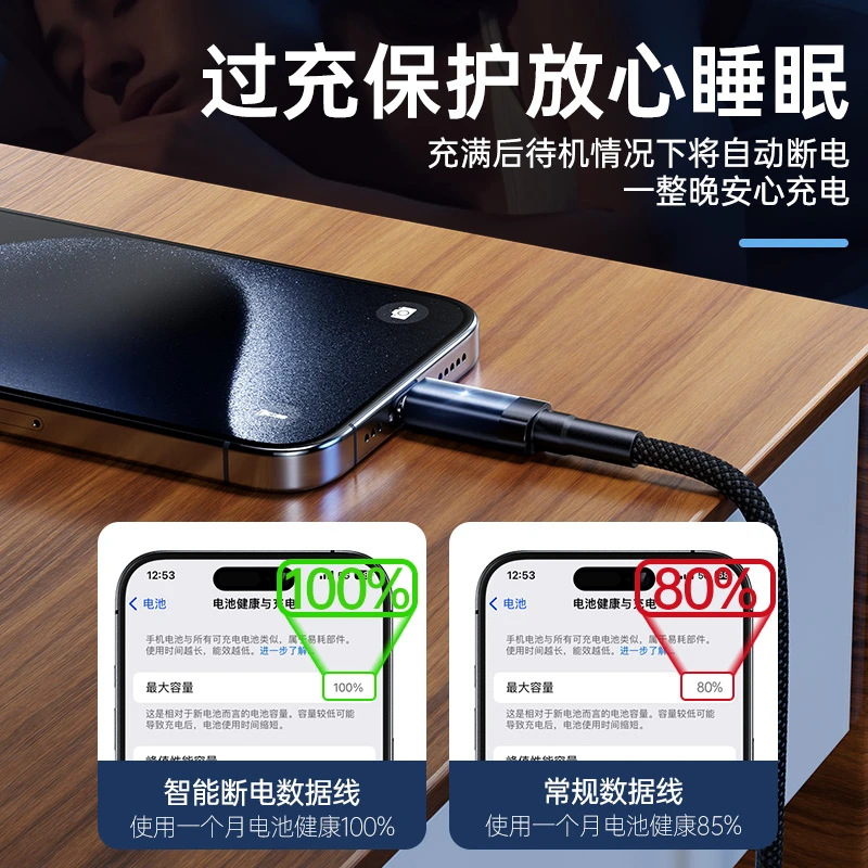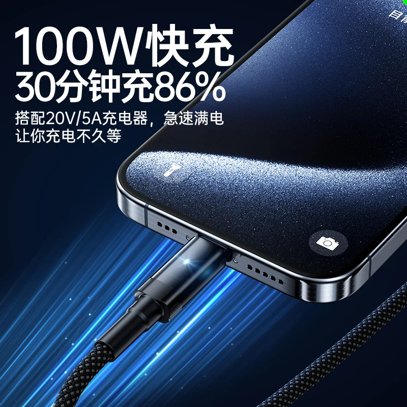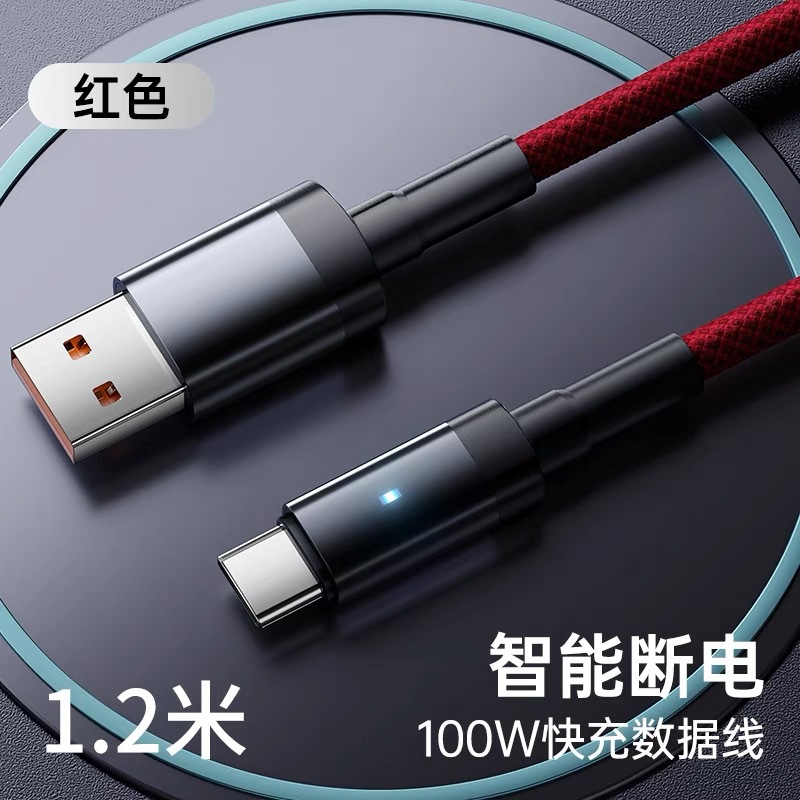 充满断电100W快充type-c数据线适用华为小米安卓通用闪充充电线
