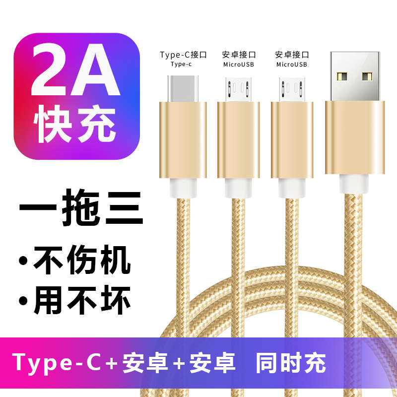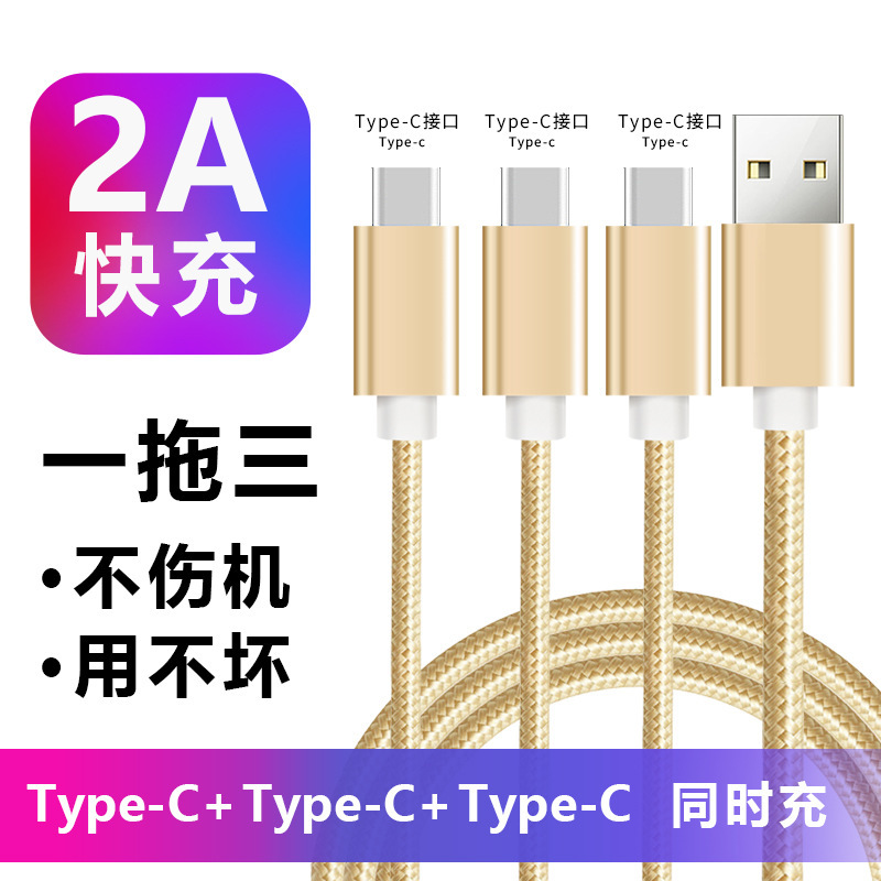 多头数据线一拖三充电器线3个Type-C适用苹果安卓手机三合一快充
