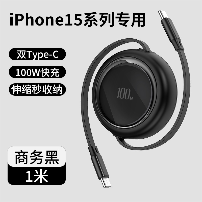 伸缩快充数据线适用苹果15pro快充双头Type-C充电线PD27W车载便携