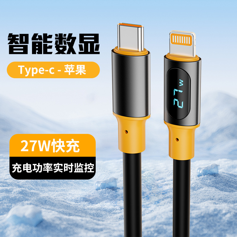 黑黄色【苹果PD接口】智能数显★PD27W快充
