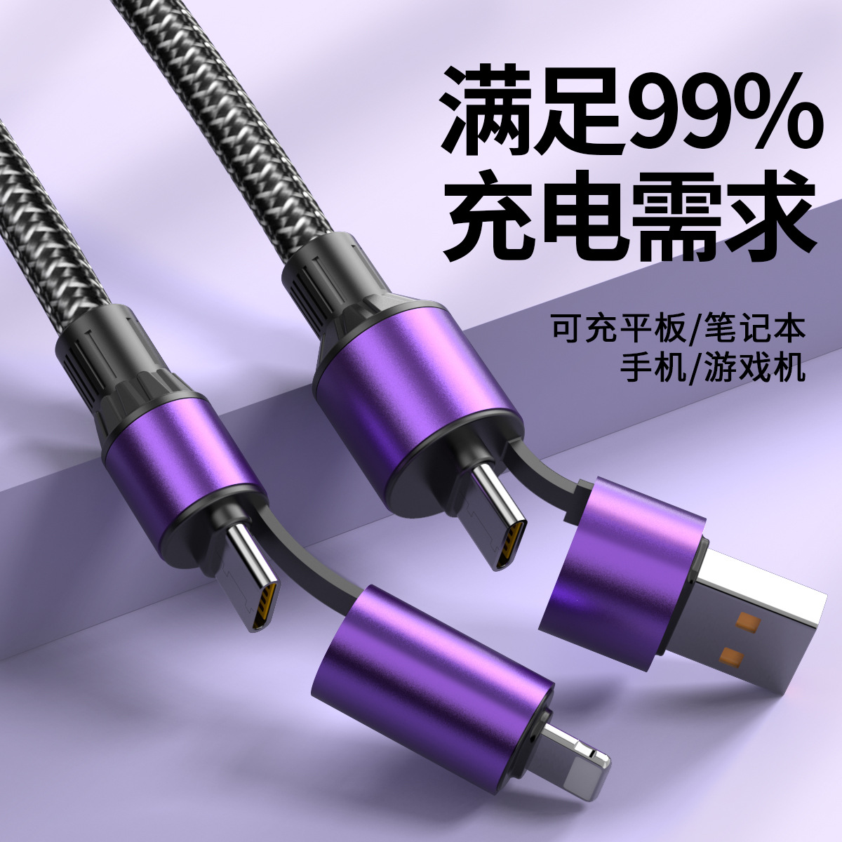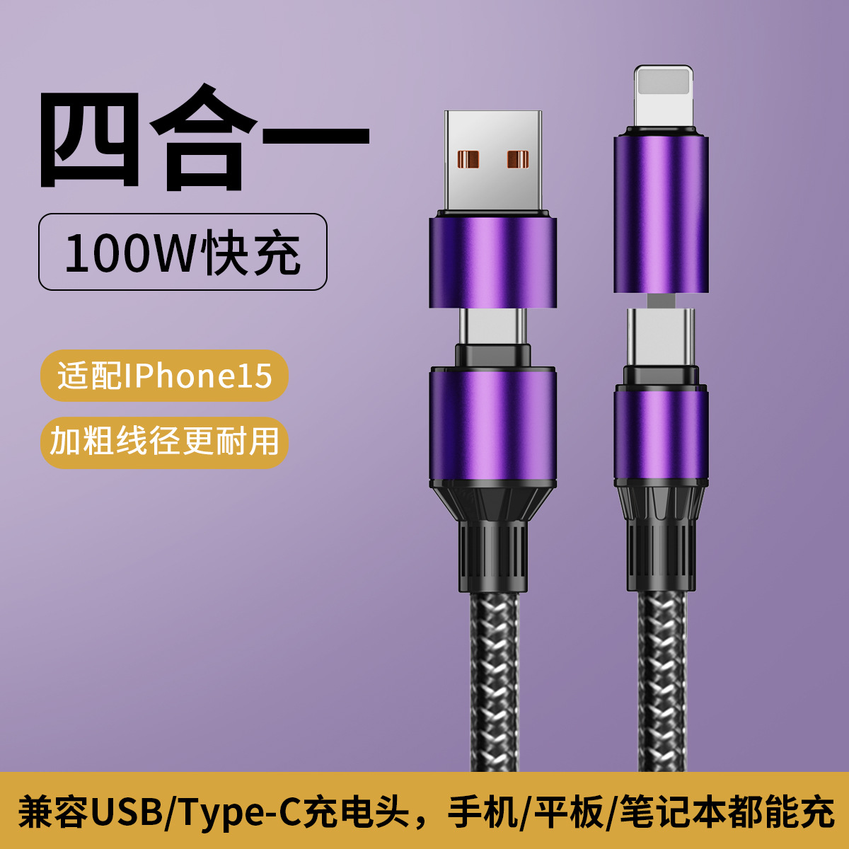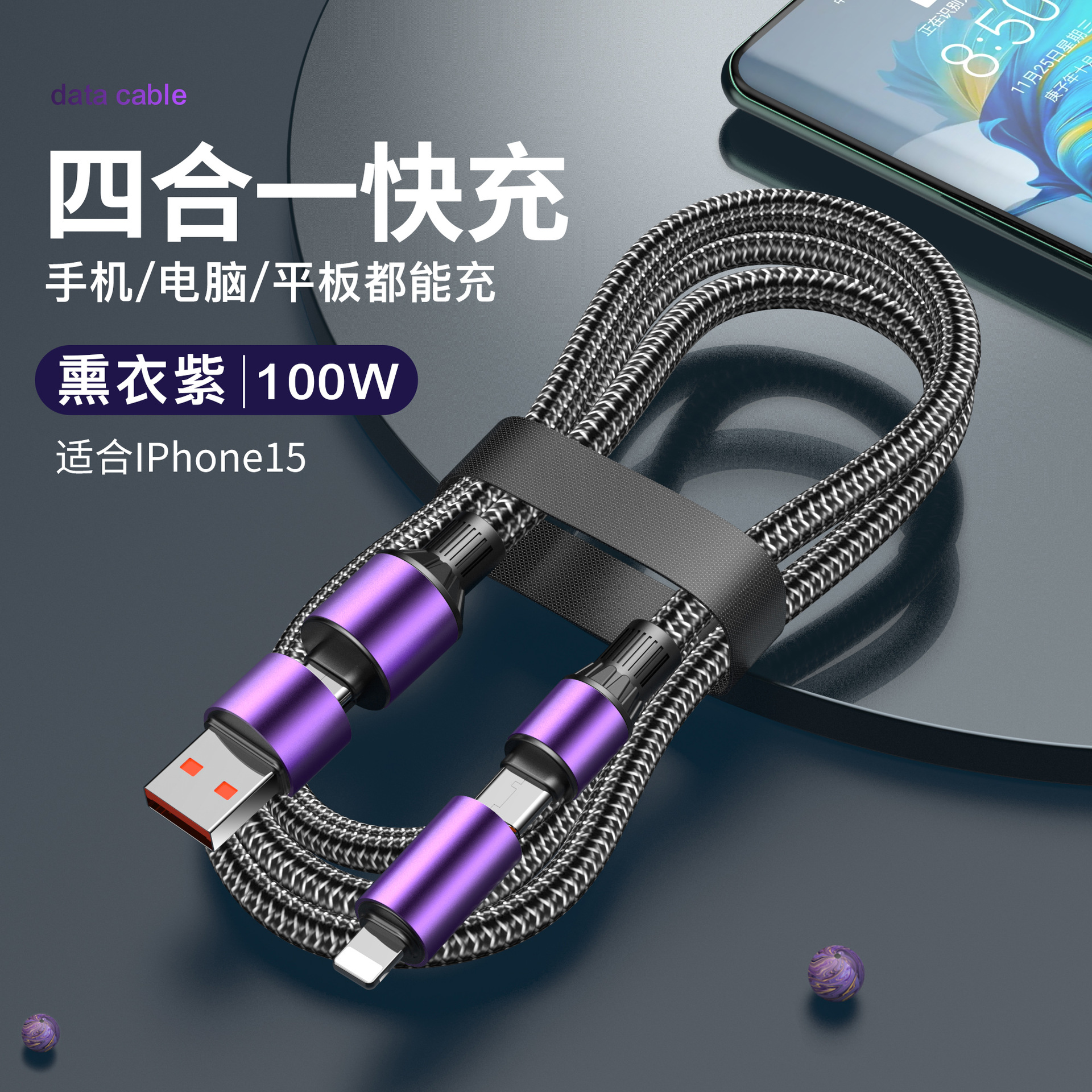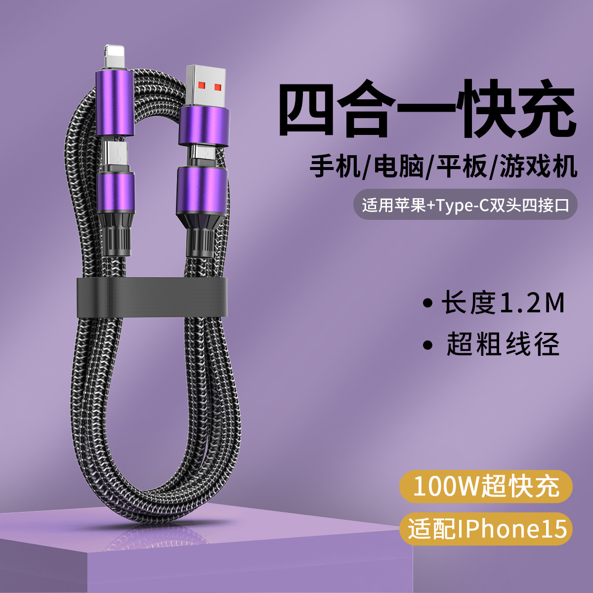 熏衣紫【100W超级快充】四合一数据线