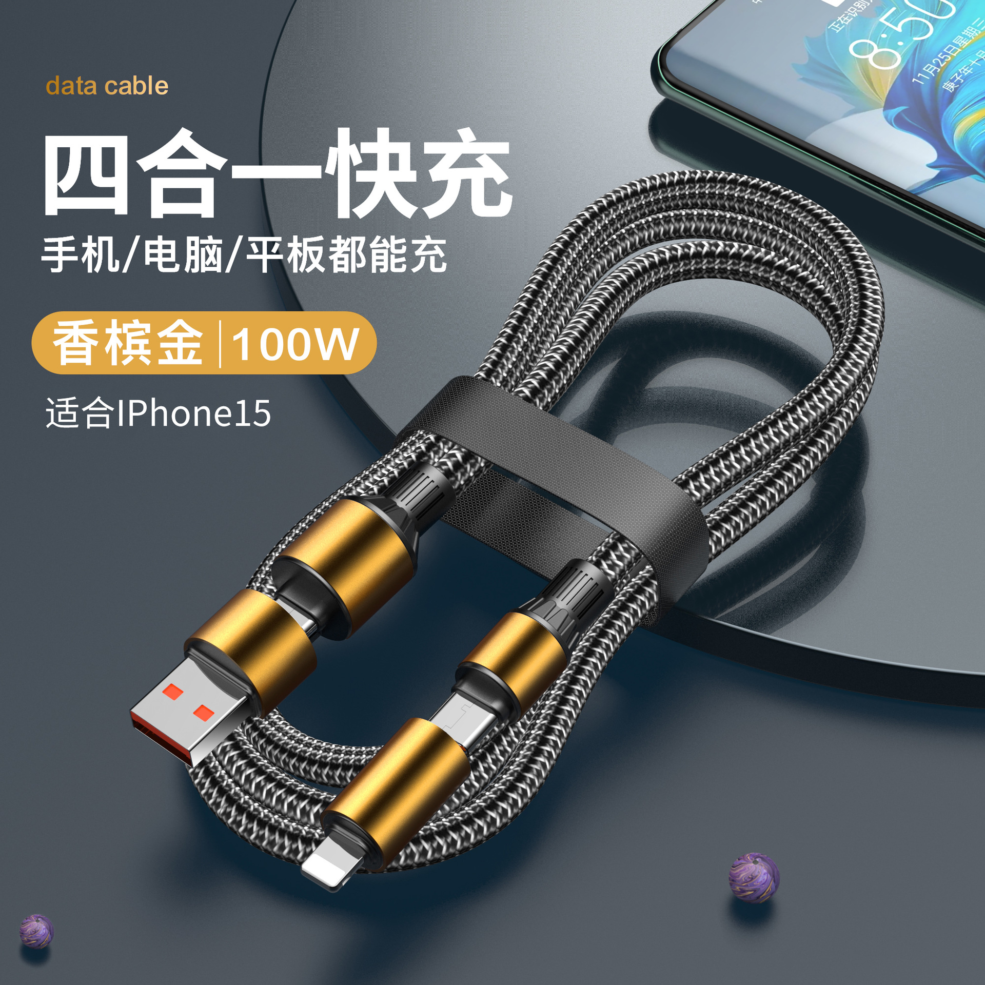 香槟金【100W超级快充】四合一数据线