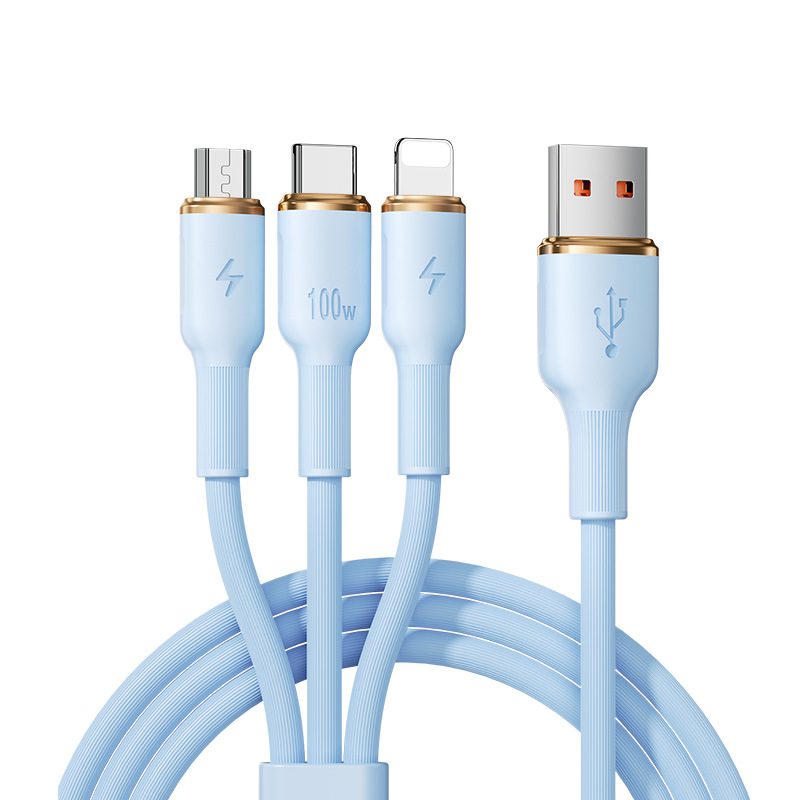 三合一数据线100w快充线一拖三适用华为小米vivo苹果手机充电线器