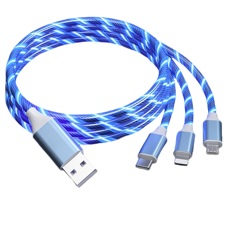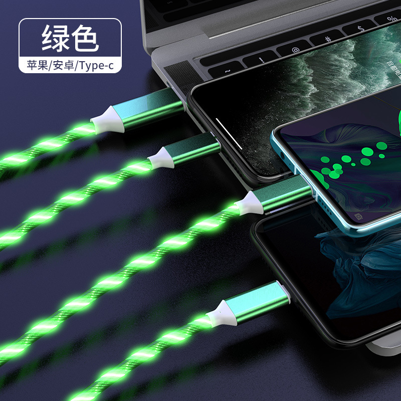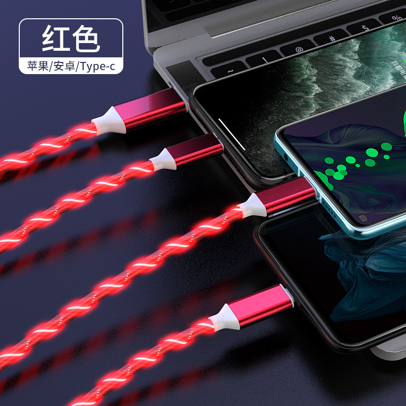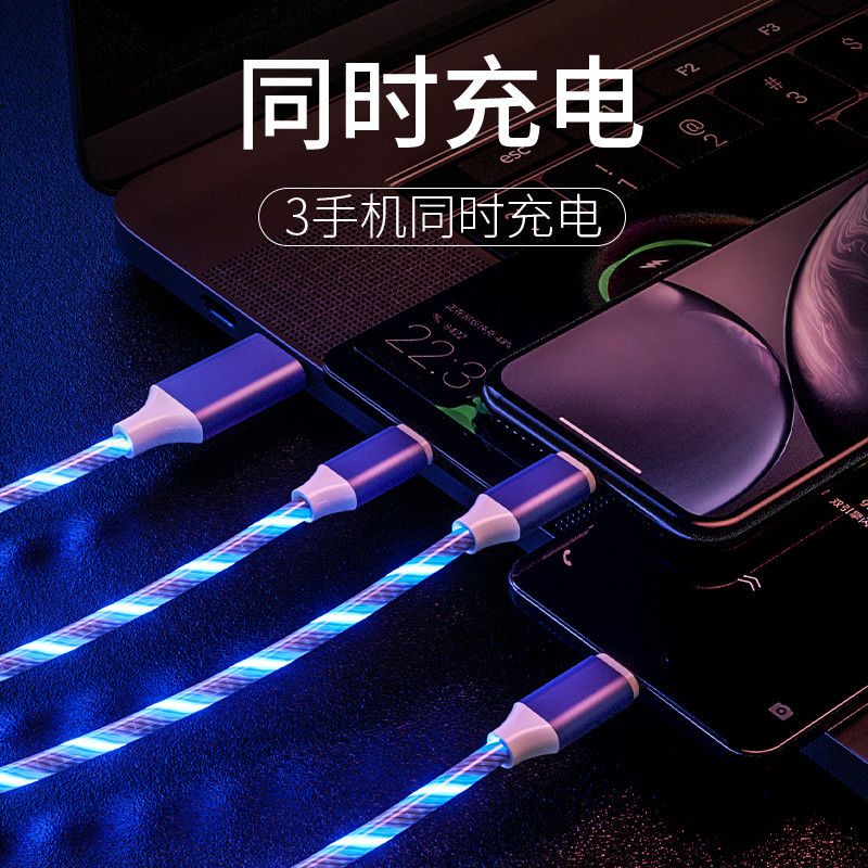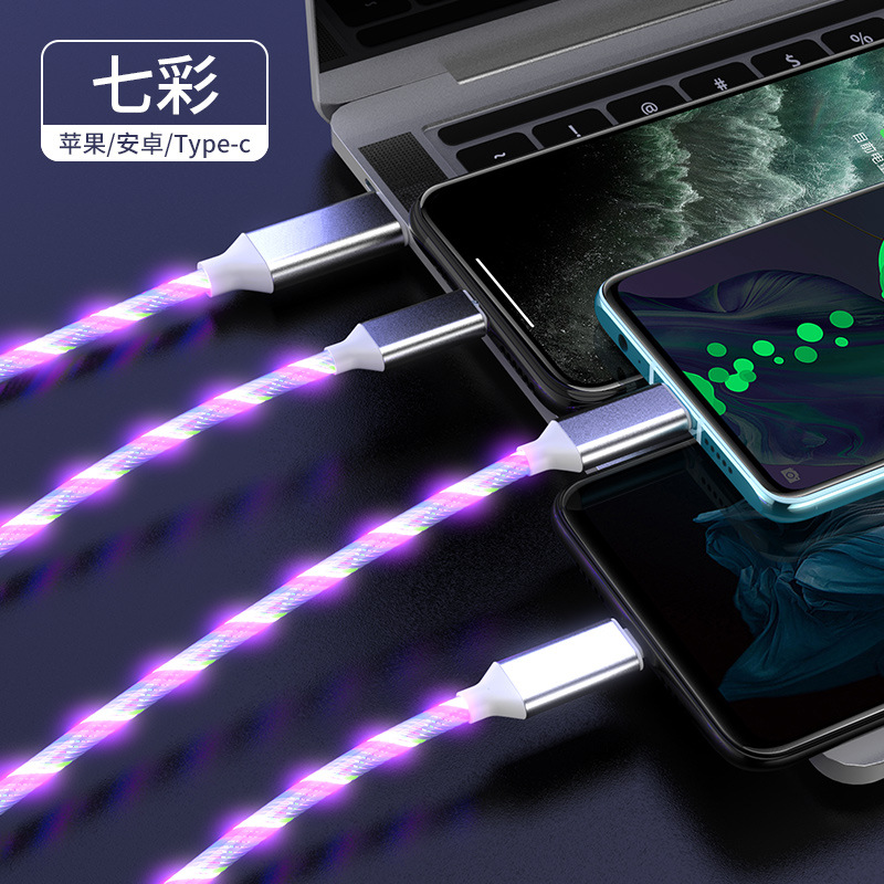 七彩流光数据线发光跑马灯三合一车载充电线一拖三安卓typec通用