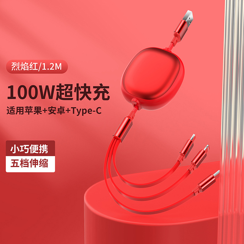 烈焰红【100W超级快充】伸缩三合一 ★五档调节