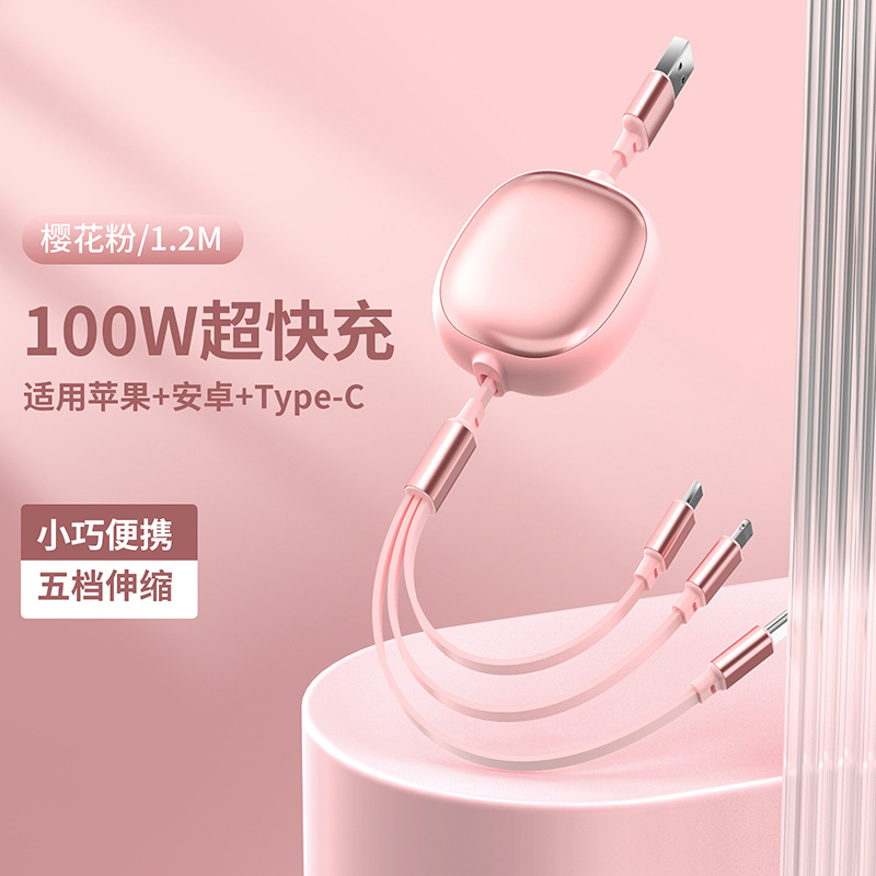 樱花粉【100W超级快充】伸缩三合一 ★五档调节