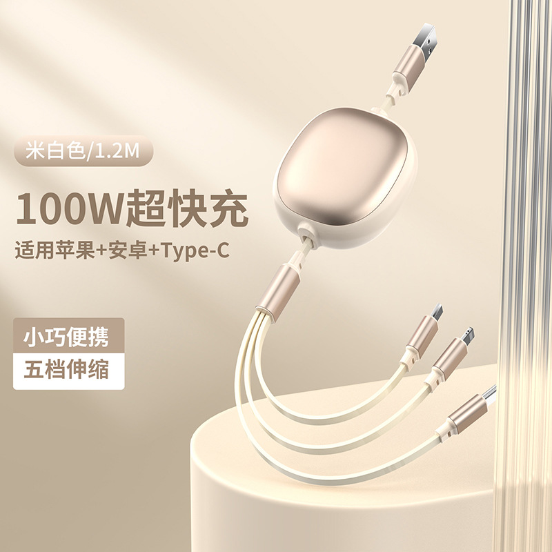 米白色【100W超级快充】伸缩三合一 ★五档调节