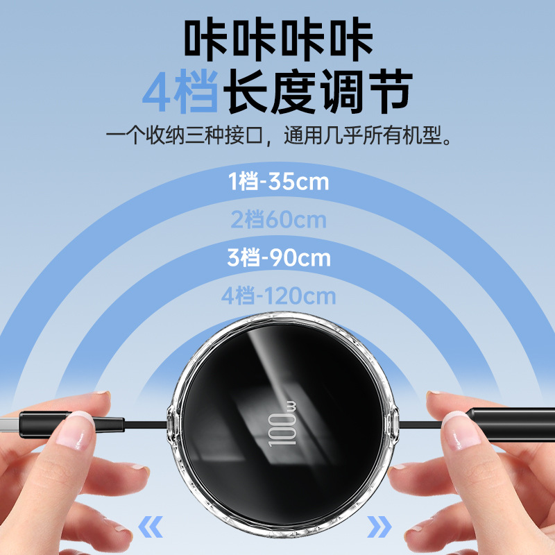 100W快充一拖三伸缩数据线三合一充电线礼品适用华为荣耀苹果手机