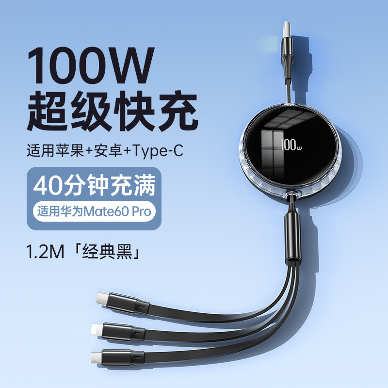 经典黑【100W快充】伸缩三合一