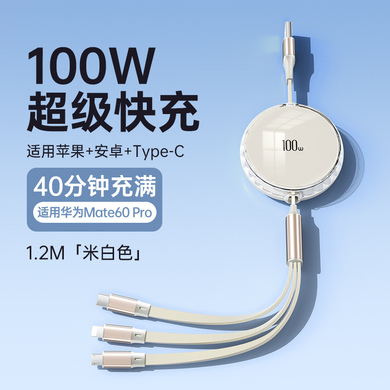 米白色【100W快充】伸缩三合一