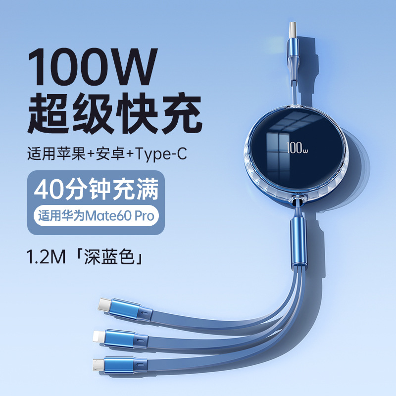 深蓝色【100W快充】伸缩三合一
