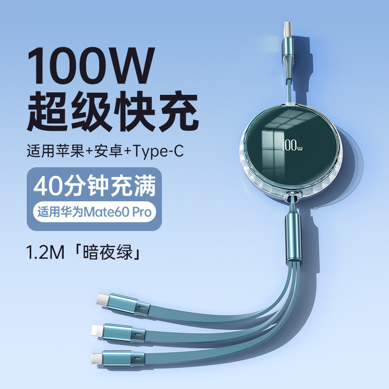 暗夜绿【100W快充】伸缩三合一