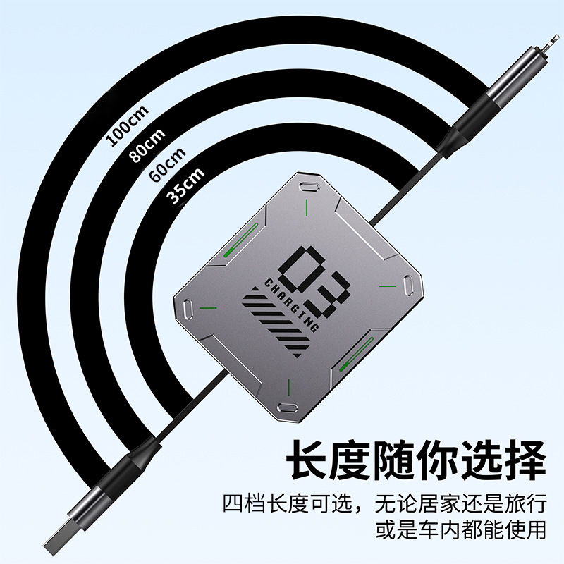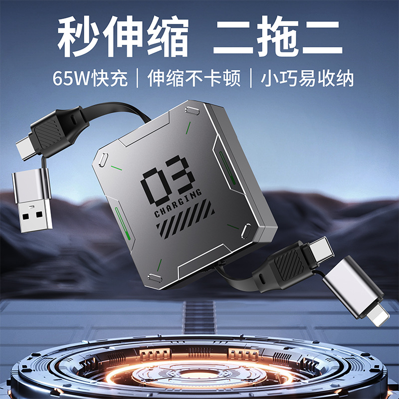二拖二伸缩快充数据线65W快充四合一适用苹果15/16华为手机车载