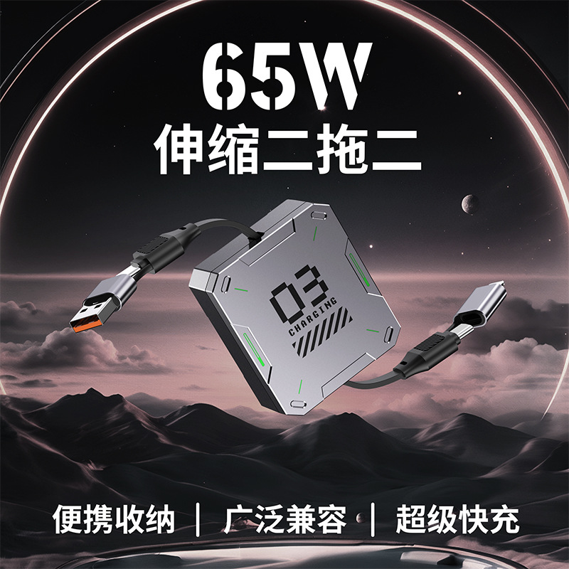 灰色【二拖二伸缩线】65W超级快充