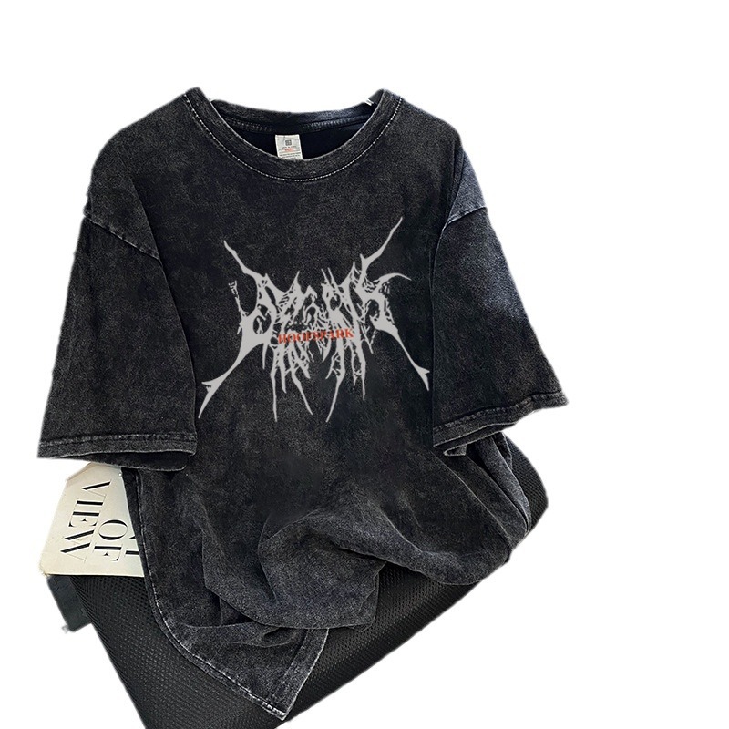 重磅纯棉短袖t恤男女美式潮流水洗半袖体恤夏季新款大码做旧上衣