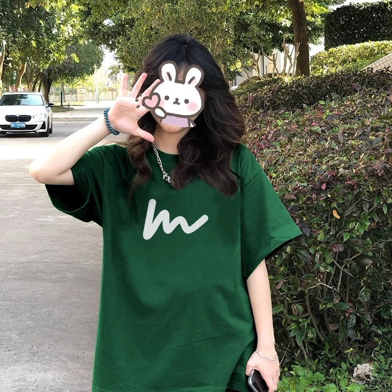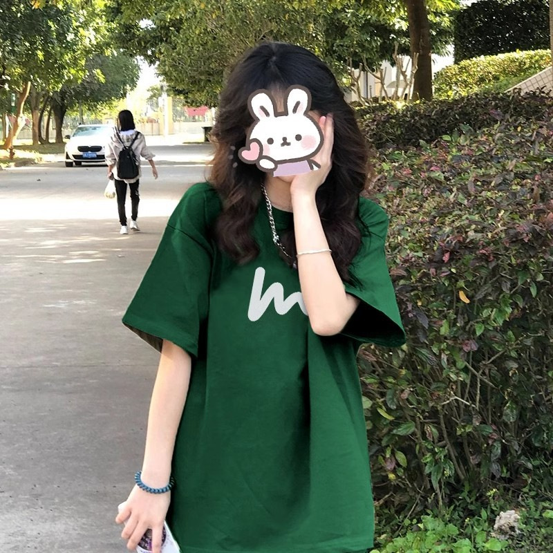 韩系风高级感简约字母印花短袖T恤女夏oversize宽松显瘦正肩上衣