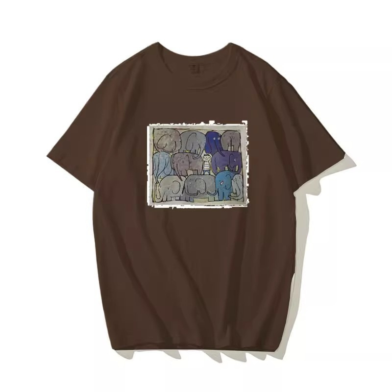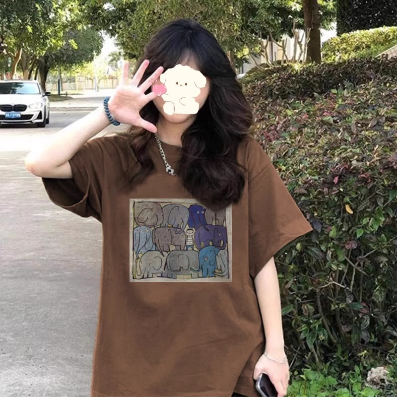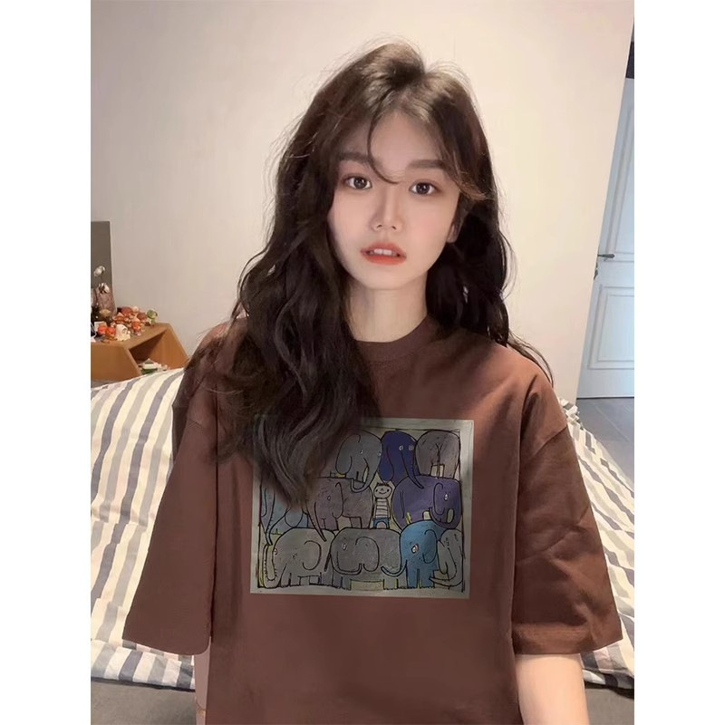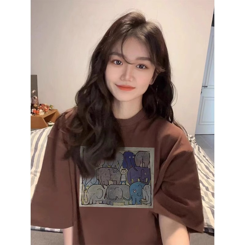 棕色短袖t恤女夏季美式复古小个子韩版宽松港味chic原宿风上衣ins