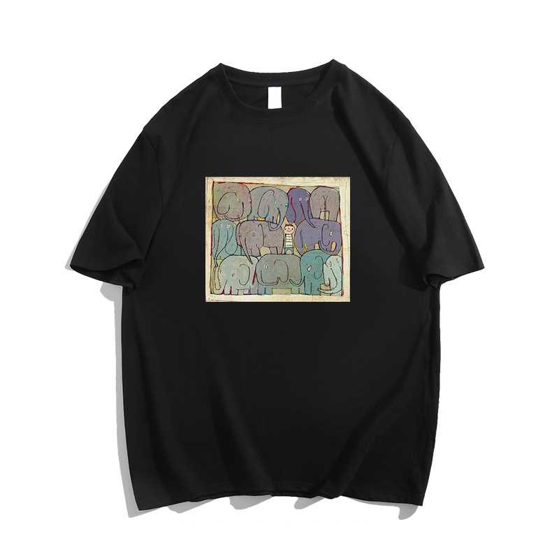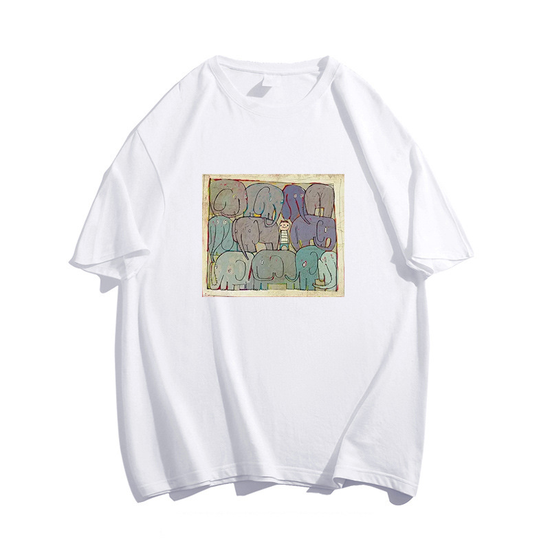 欧货独特别致短袖t恤女夏季爆款纯棉宽松大版微胖正肩遮肚上衣潮