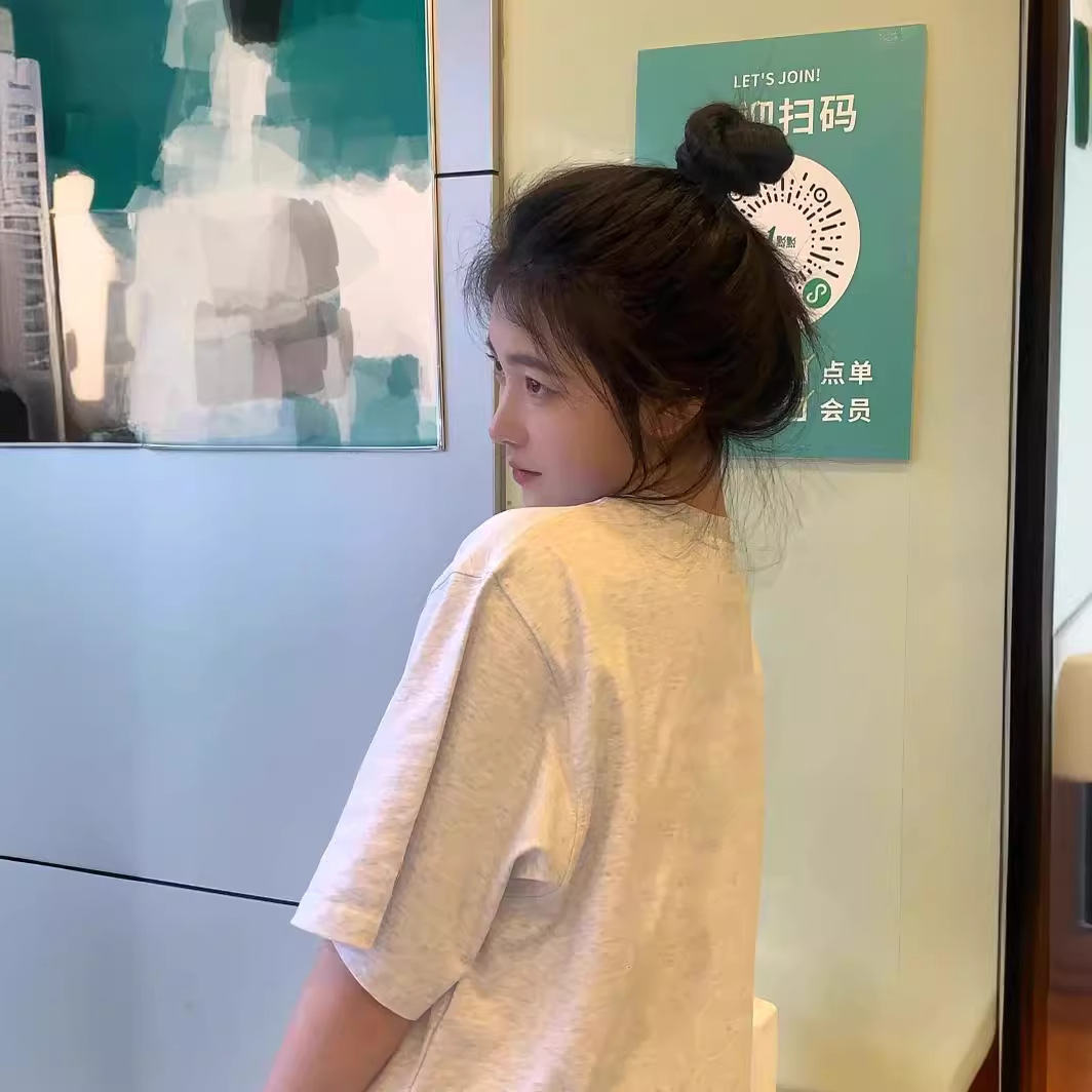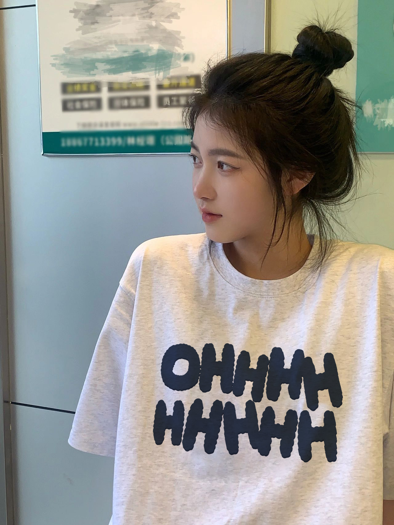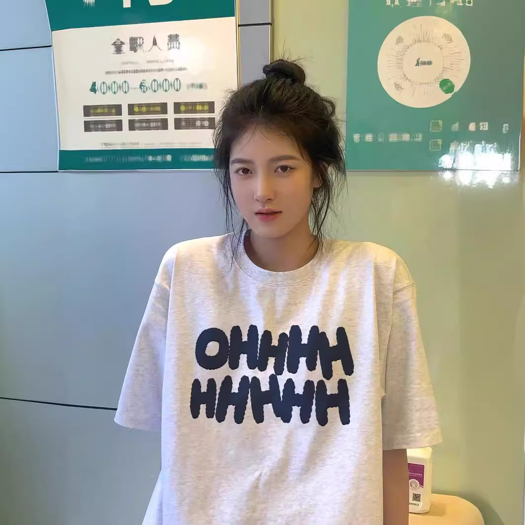 纯棉美式复古短袖t恤女夏季新款小个子宽松圆领国潮半袖上衣