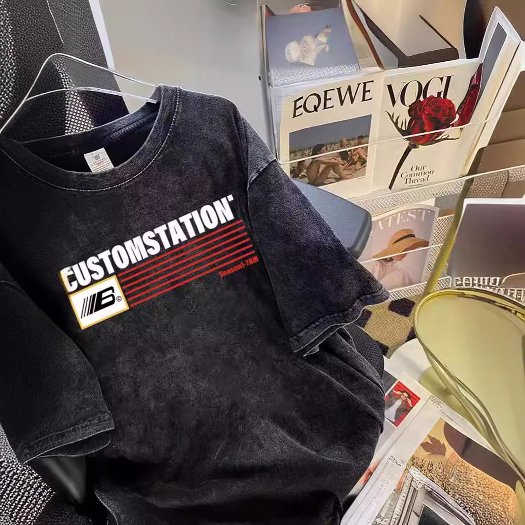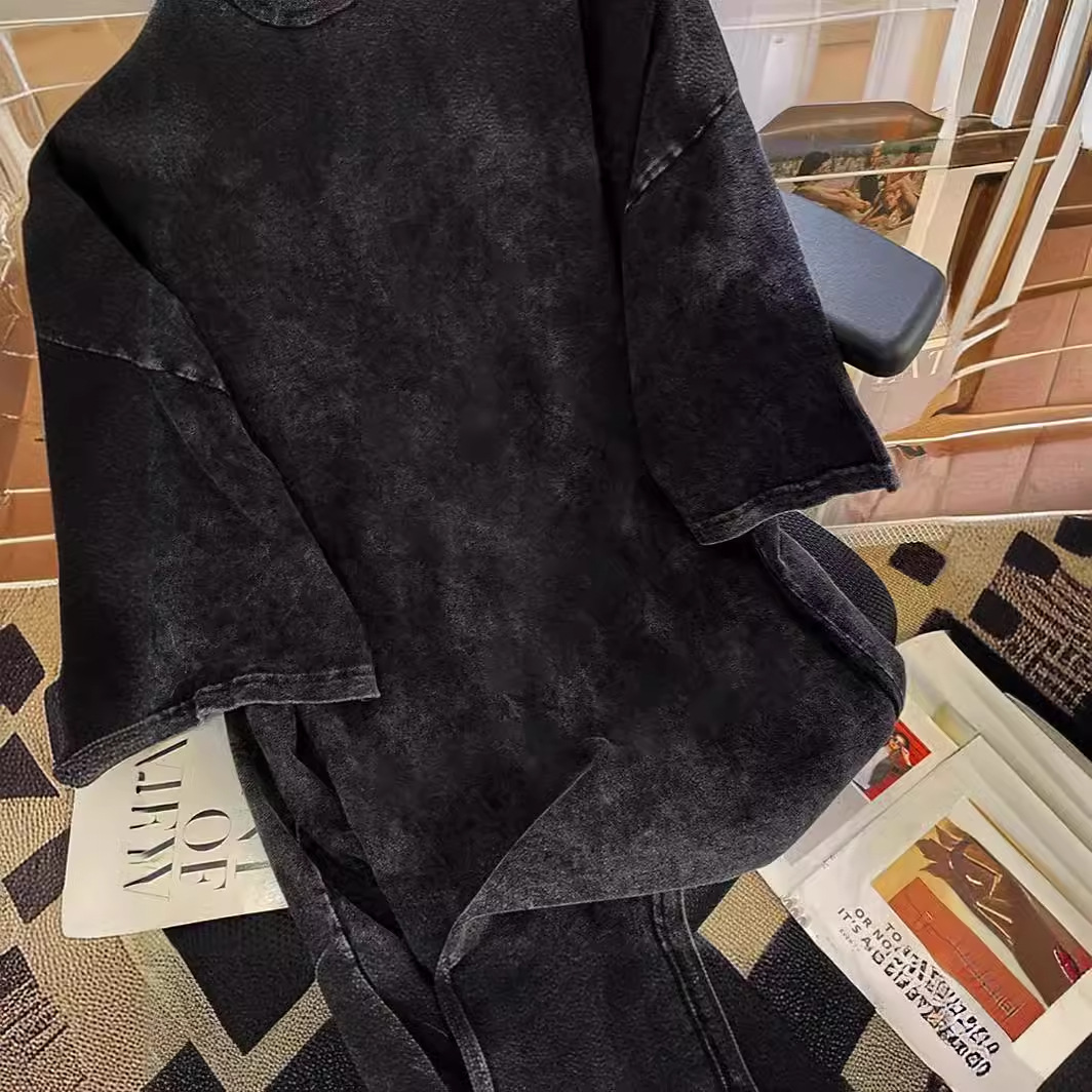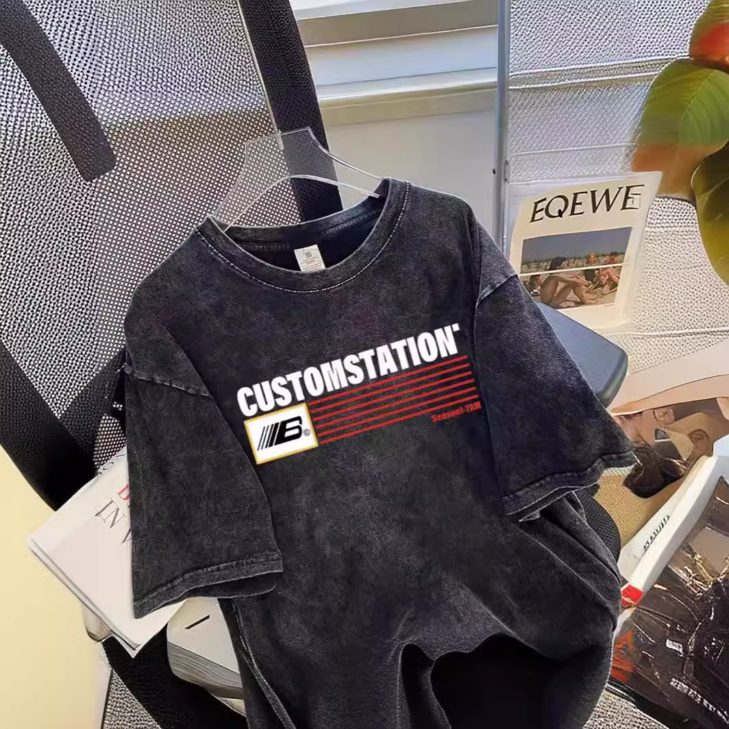 国潮美式重磅纯棉短袖t恤男女夏季情侣高街做旧上衣大码200斤体恤