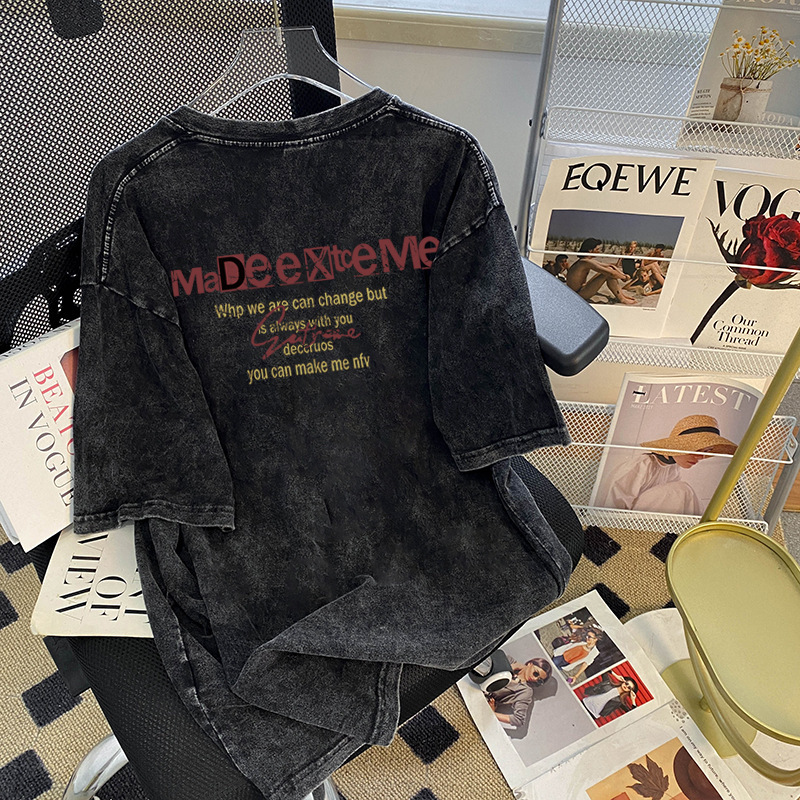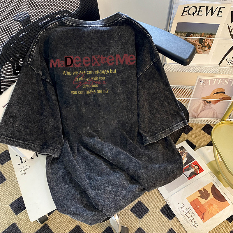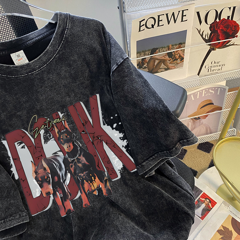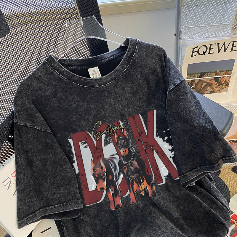 美式复古社宾犬印花纯棉短袖男女夏潮牌嘻哈街头水洗做旧宽松T恤