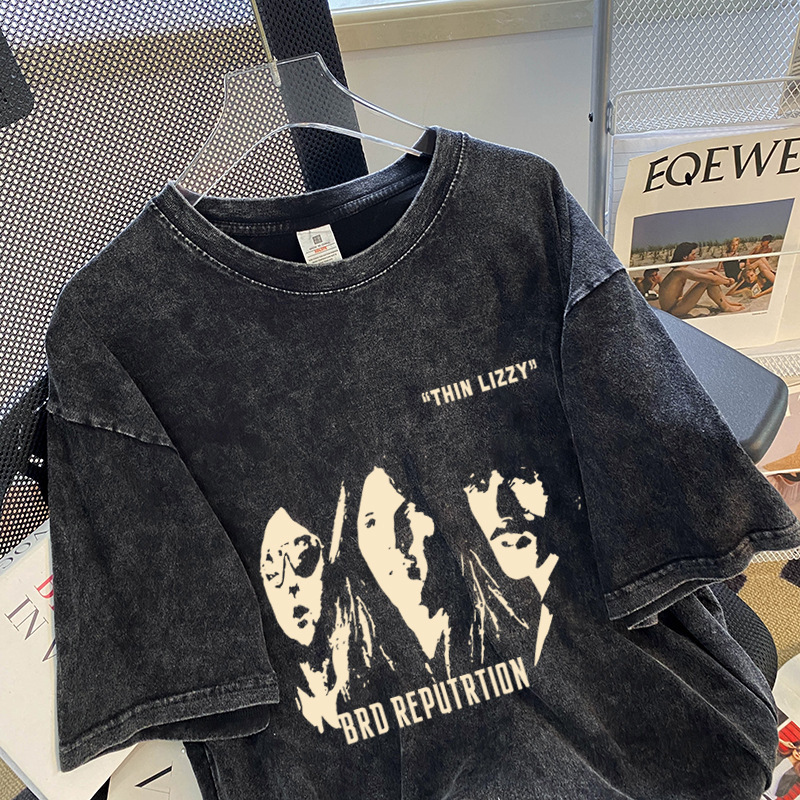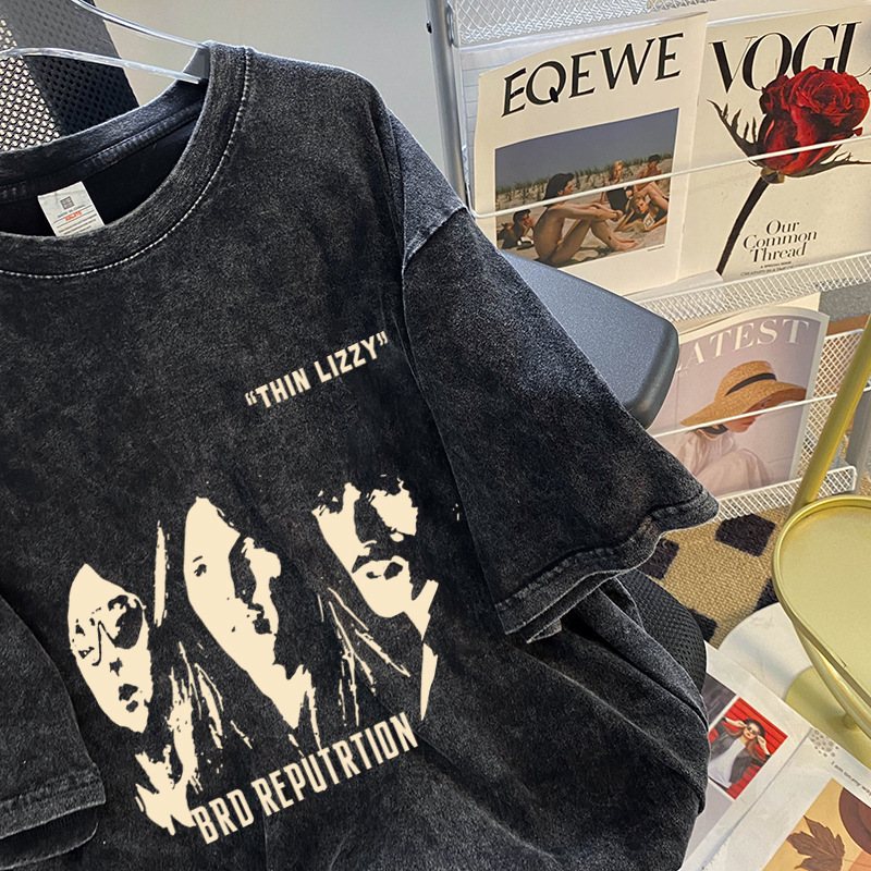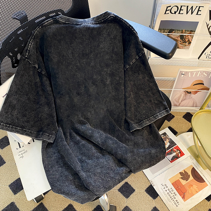 美式复古水洗做旧正肩短袖t恤女夏纯棉重磅潮牌宽松情侣半袖上衣
