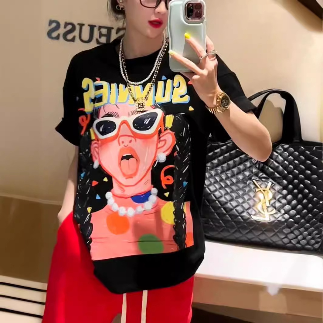 夏季字母印花新款卡通休闲圆领情侣短袖T恤男女宽松半袖DT575