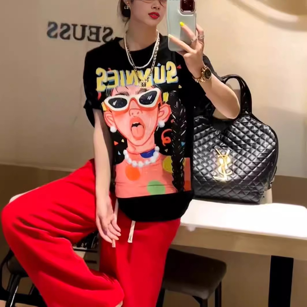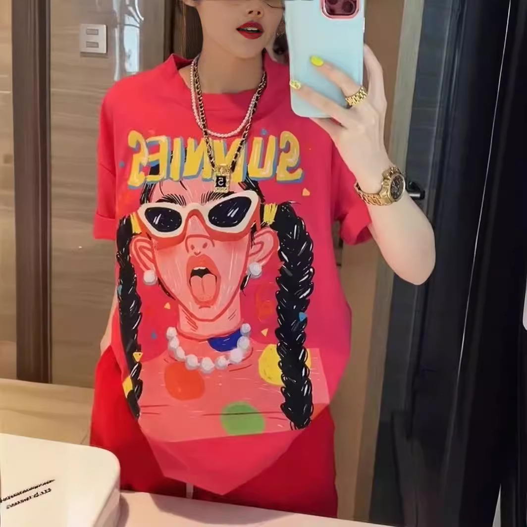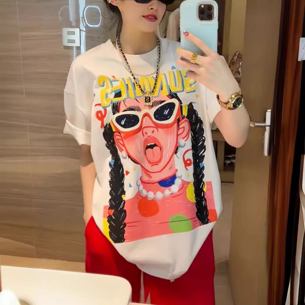 欧货复古嘻哈涂鸦印花短袖T恤女夏季宽松百搭情侣纯棉半袖上衣潮