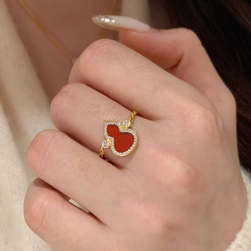 小红书爆款红福禄葫芦戒指2025新款新中式红玛瑙可调节抽拉指环女