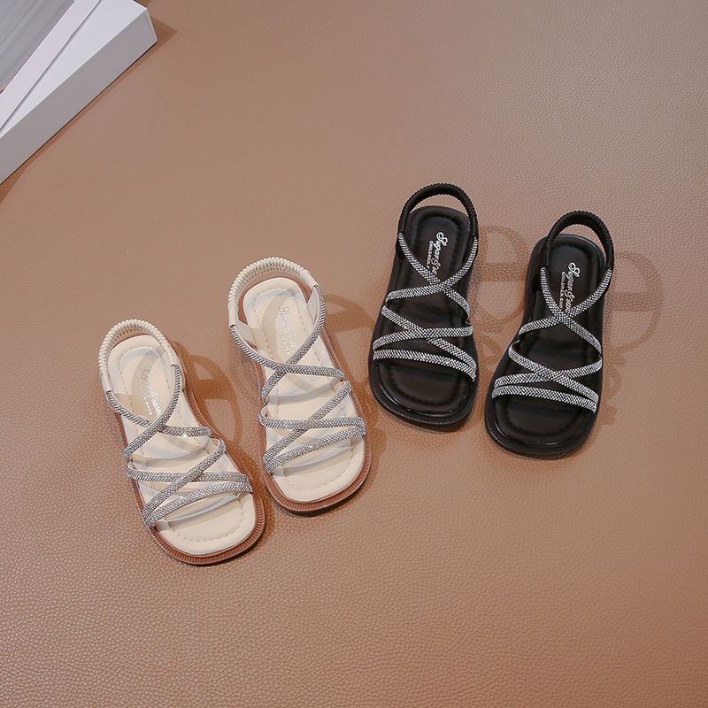 女童凉鞋女孩洋气水钻公主鞋女宝宝2025夏季新款儿童软底沙滩凉鞋